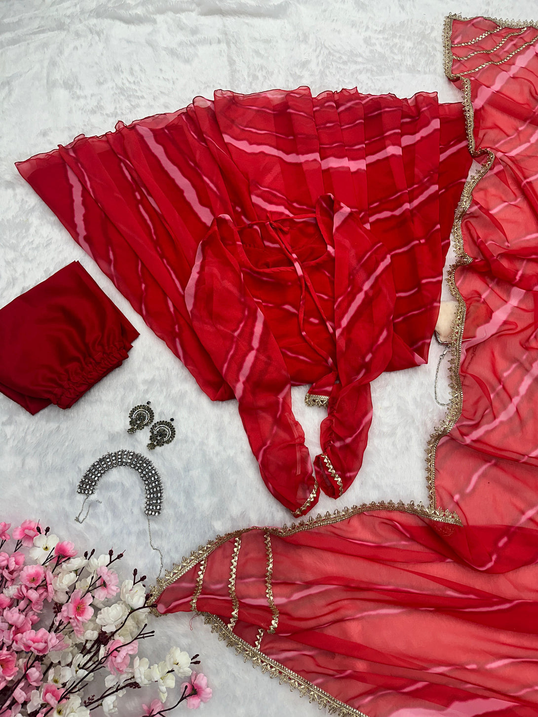 Anarkali - Pure Georgette printed Anarkali suit of huge flair with Designer Lace Border