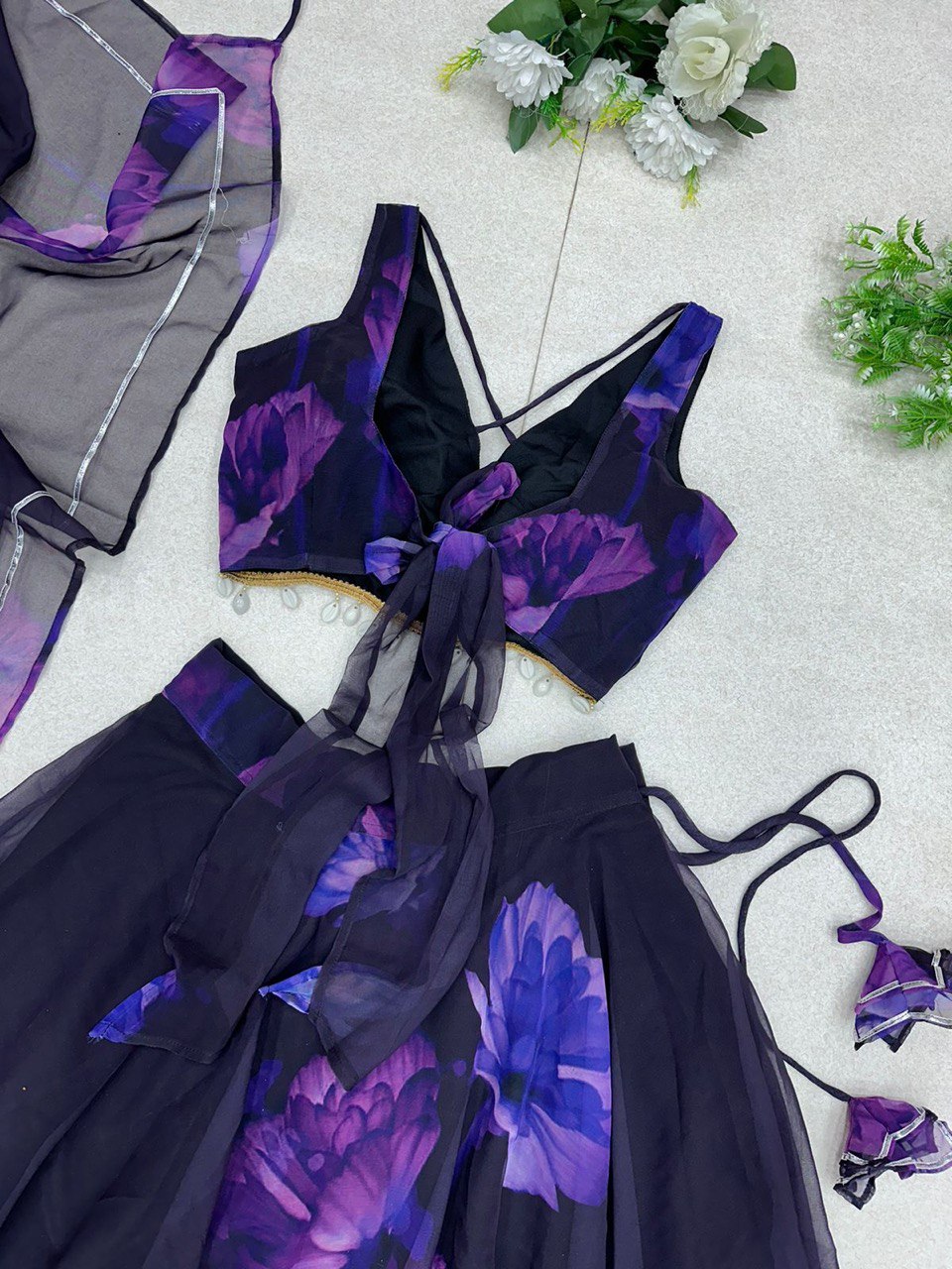*lehnga* - Pure georgette silk digital printed lehnga 8mtr flair lehnga with canvas patta fully stitched