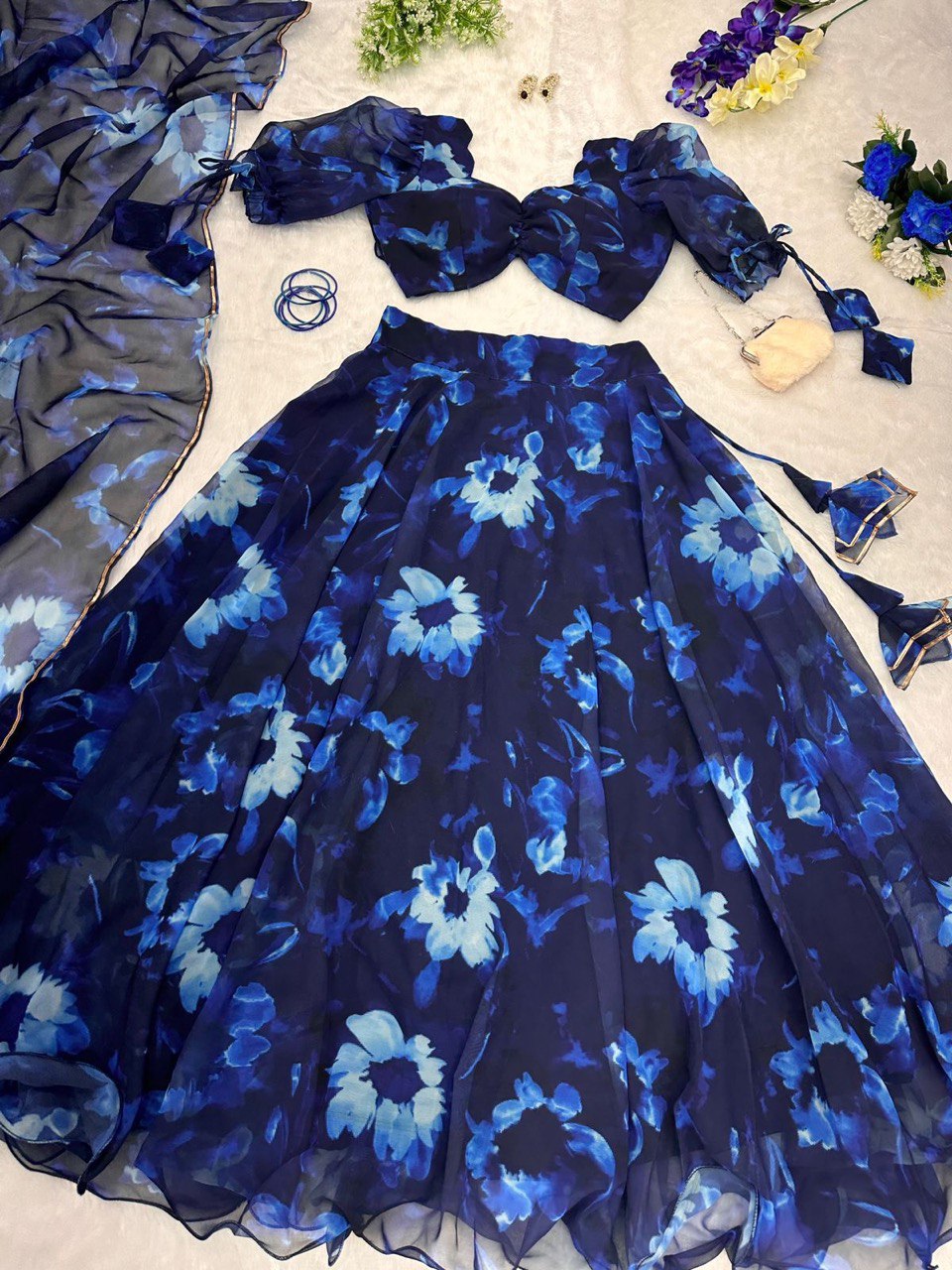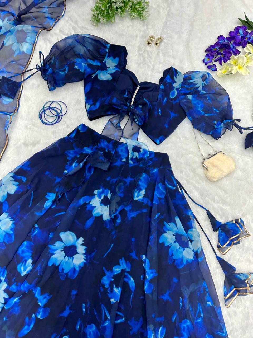 Indulge in the timeless charm of the Pure Georgette Silk Digital Printed Lehnga ensemble. The fully stitched blouse, meticulously crafted from pure georgette, offers a perfect fit in size 38 with a generous margin provided up to size 42. The lehenga takes center stage with captivating digital prints on pure georgette silk, featuring an impressive 8-meter flair and enhanced by a canvas patta. A waist dori is thoughtfully included for easy waist adjustment, ensuring a personalized fit with a length of 41 inches. Completing the ensemble is a 2.1-meter broad dupatta made from georgette fabric, adorned with digital prints, adding an extra layer of elegance. This Pure Georgette Silk Digital Printed Lehnga is a celebration of refined taste and contemporary allure, ready to make a lasting impression at any special occasion with its sophisticated design and timeless appeal.