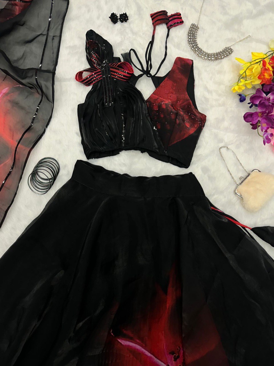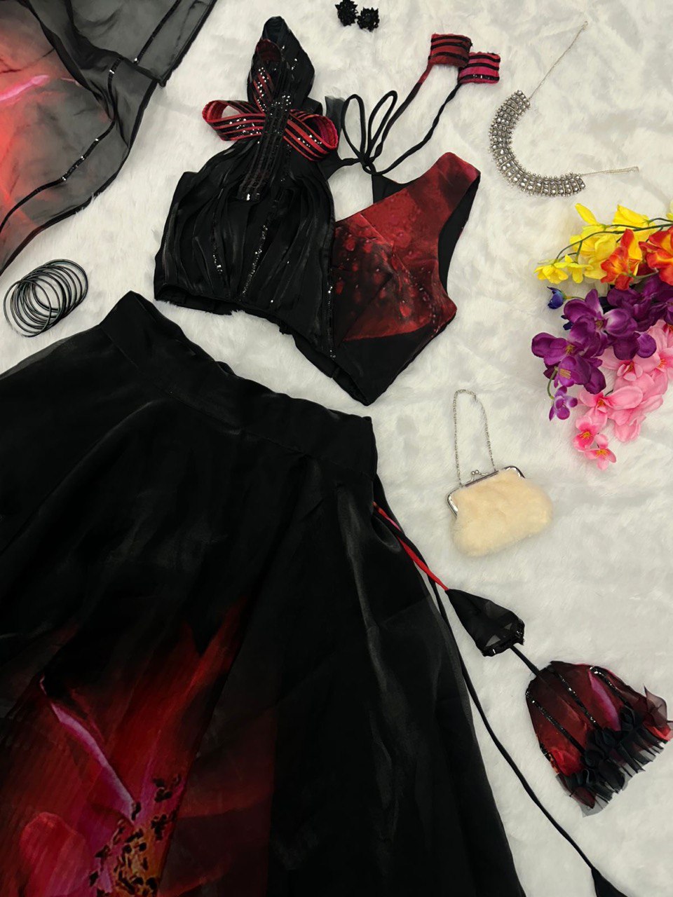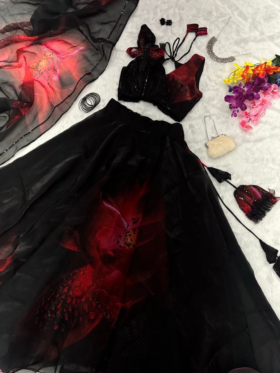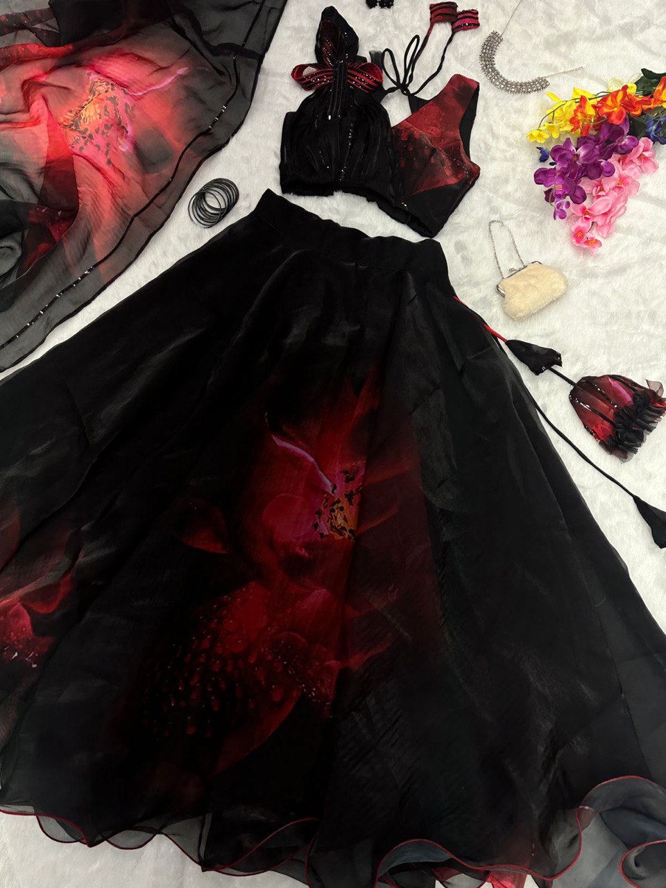 Lehenga - Pure Jimmy choo organza silk digital printed lehenga . Huge flair lehnga with canvas patta