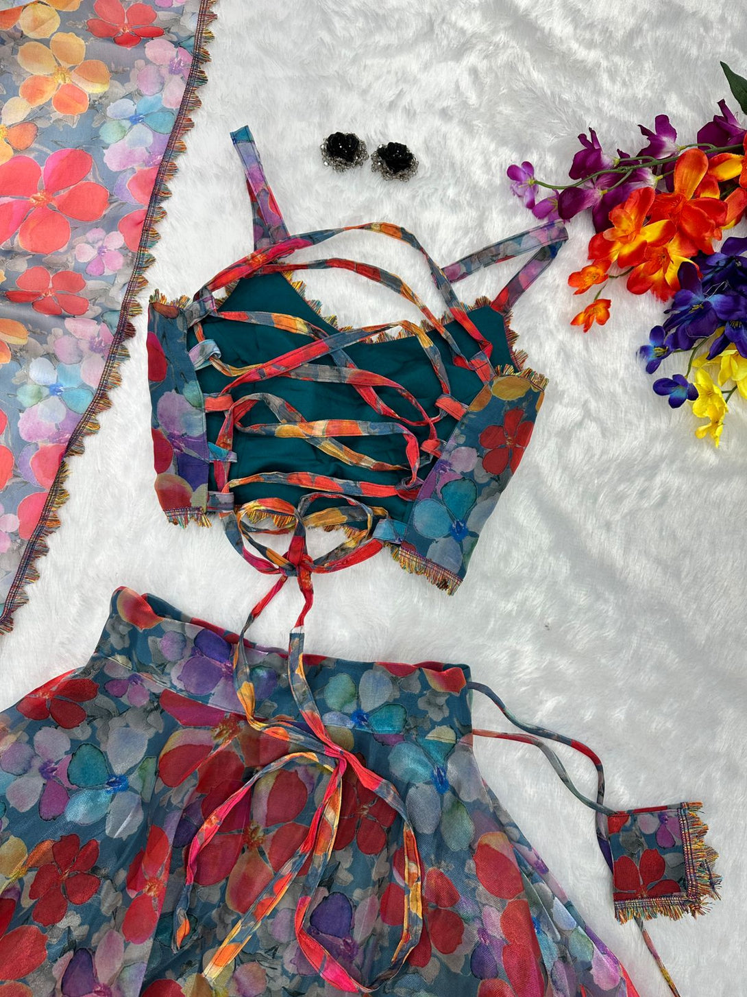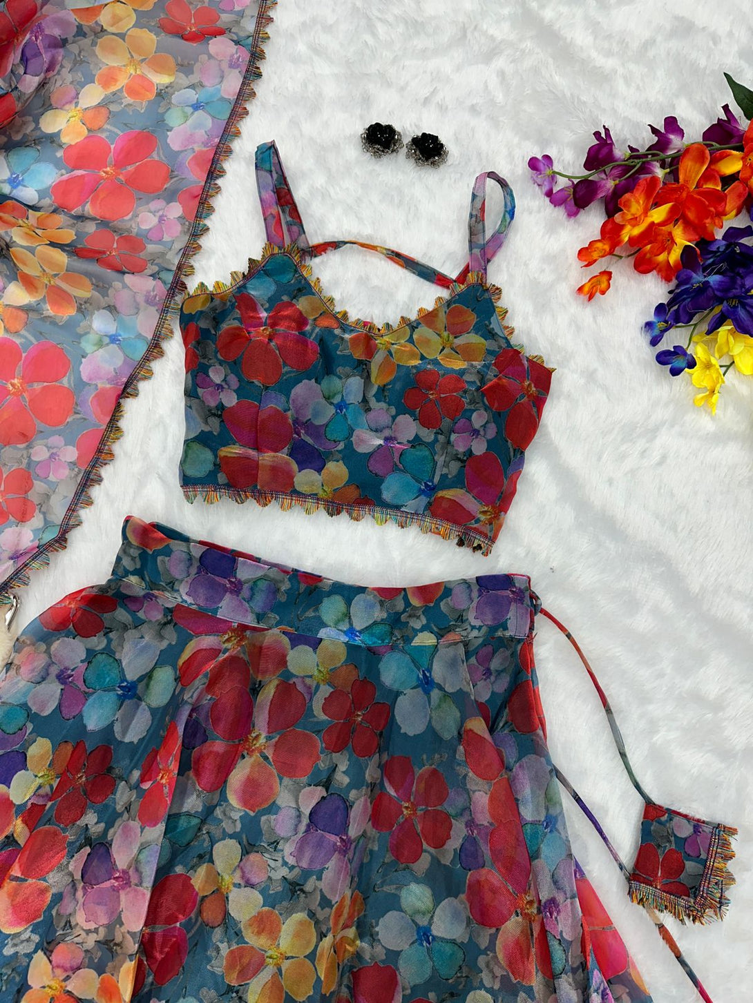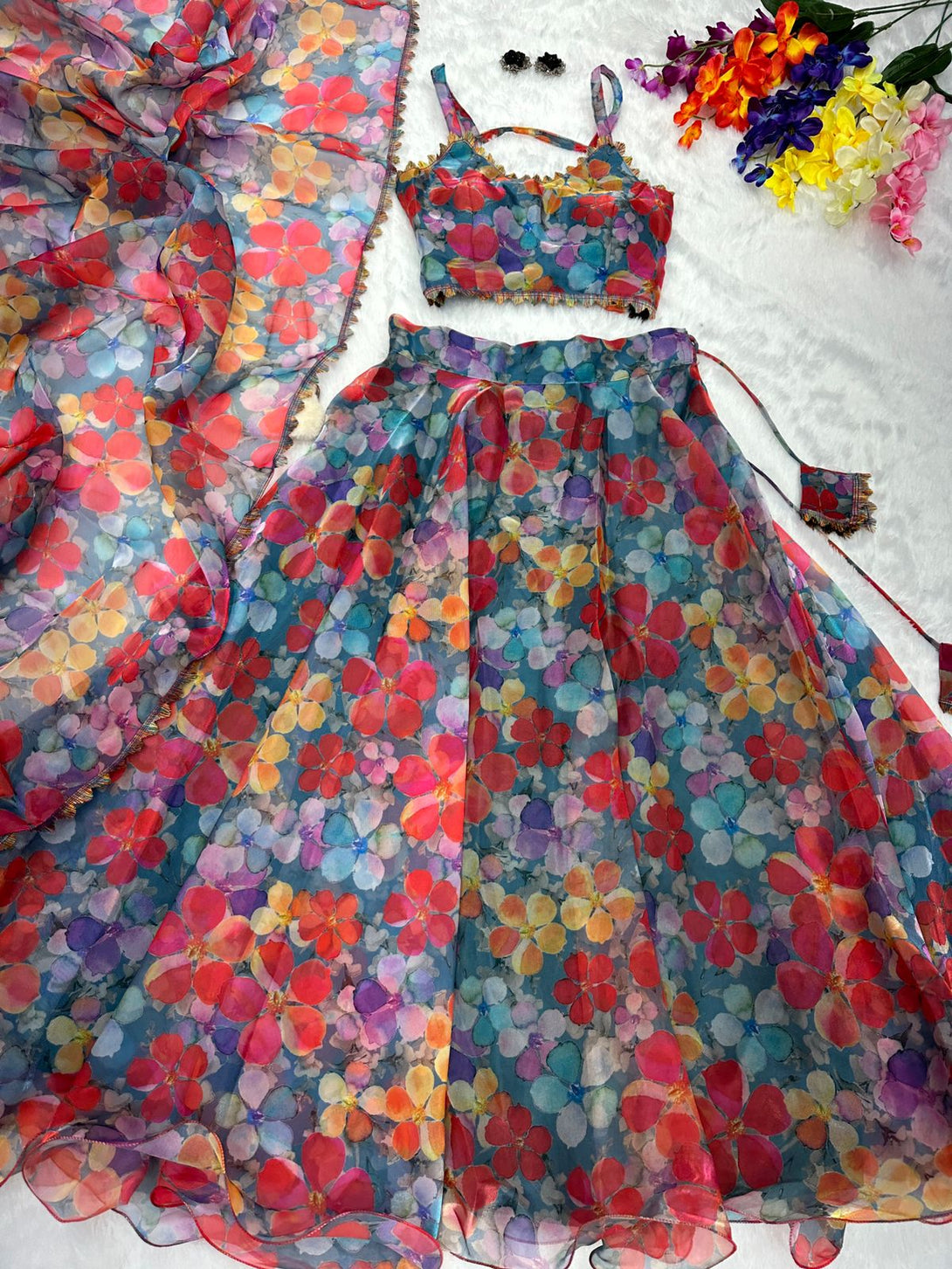 lehnga - Pure Jimmy choo organza silk digital printed lehnga. 8mtr flair lehnga with canvas patta 🌸