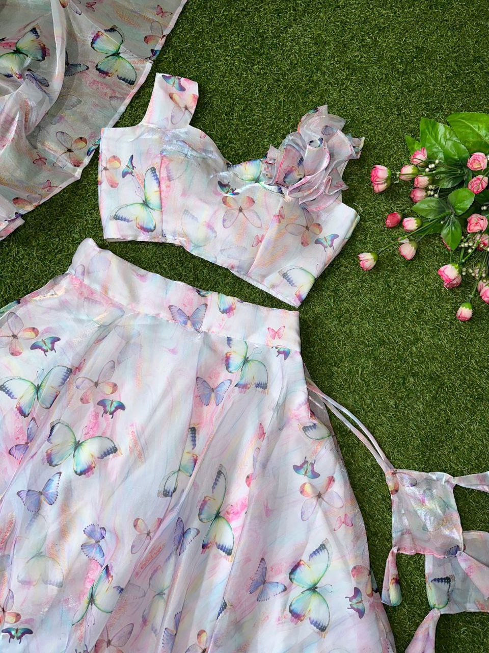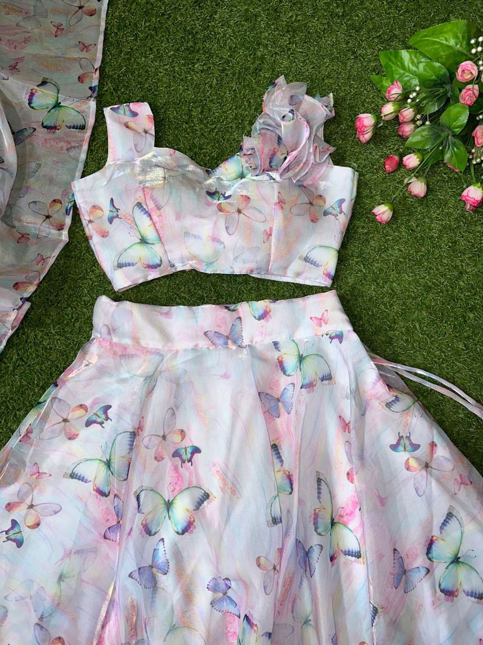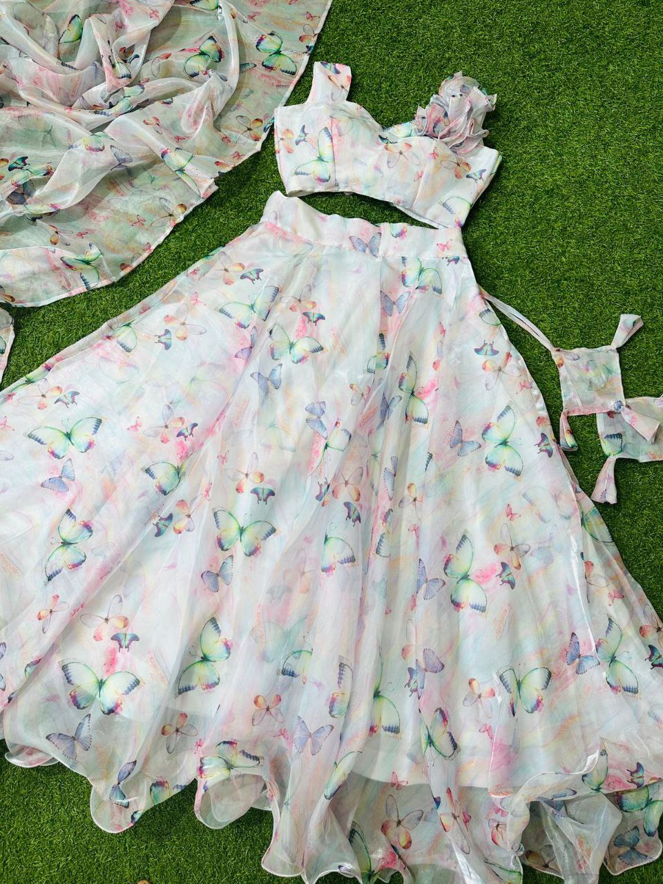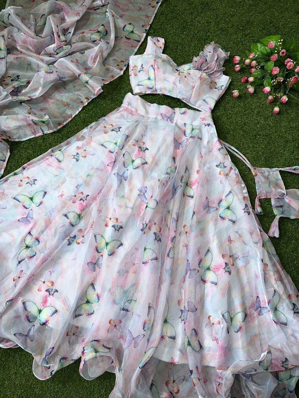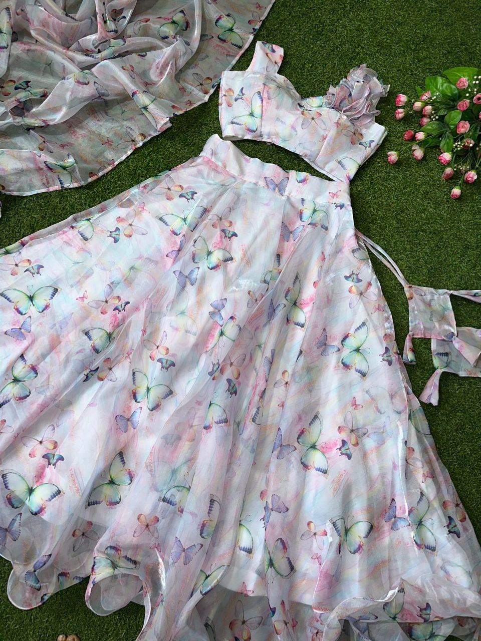 Pure Jimmy choo organza silk digital printed lehnga