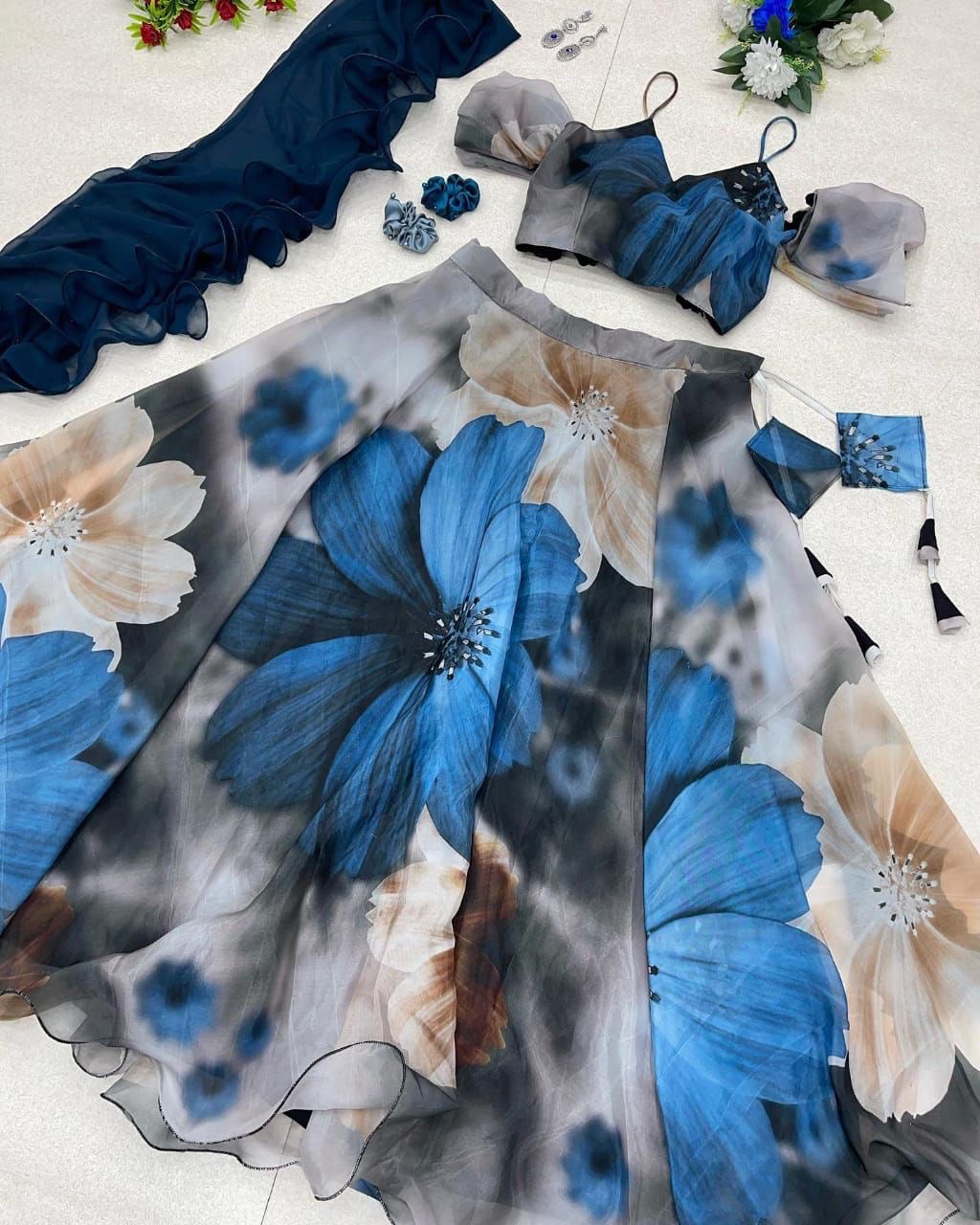 Pure Jimmy organza silk digital printed lehenga