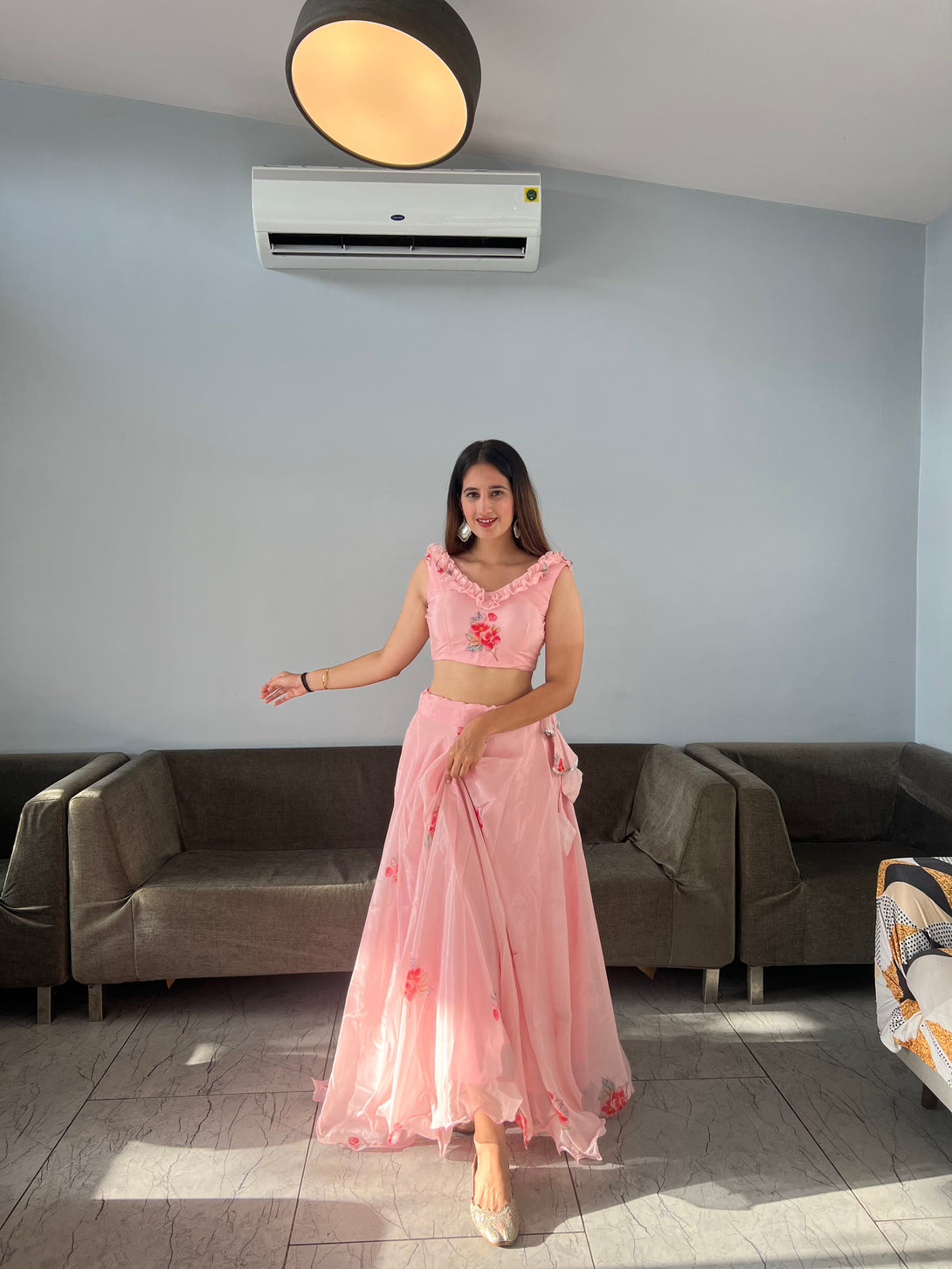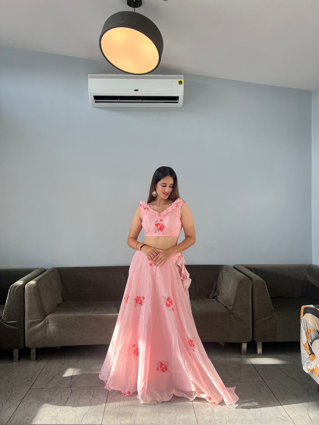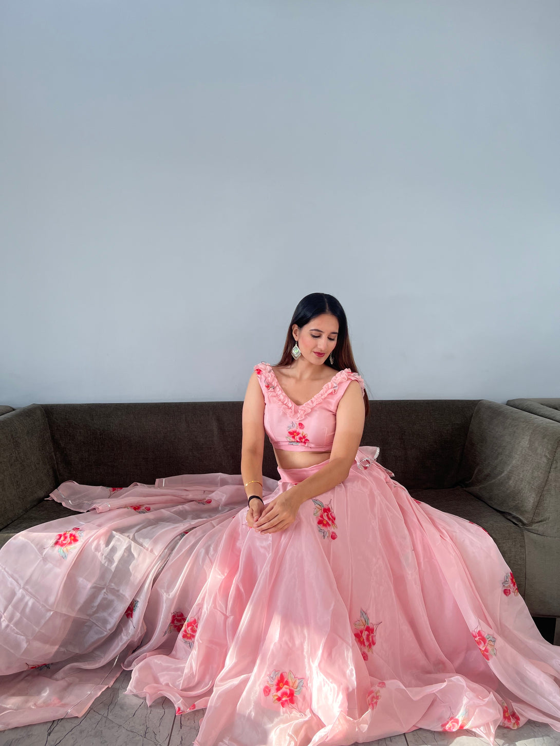 Pure Jimmy organza silk digital printed lehenga