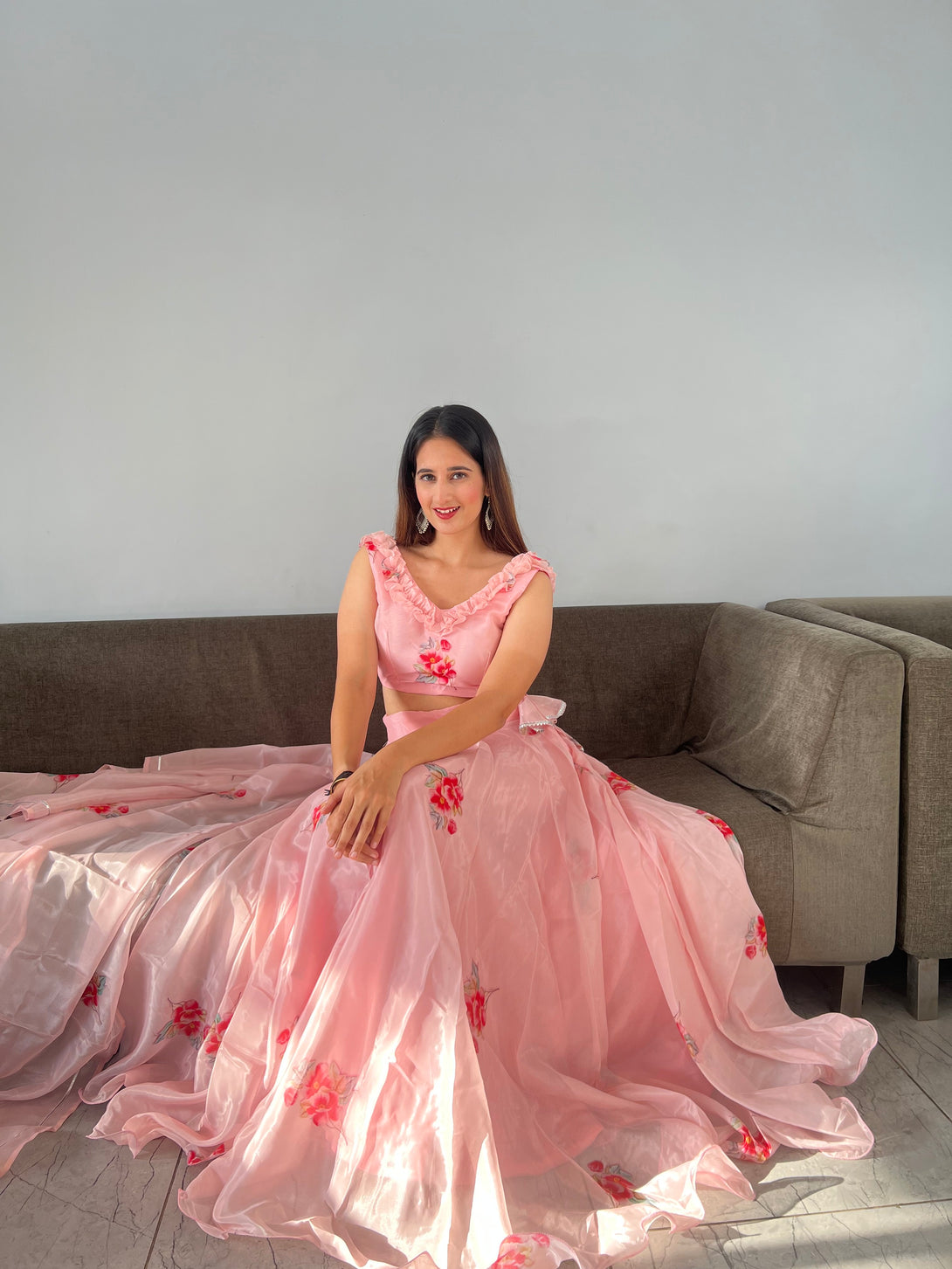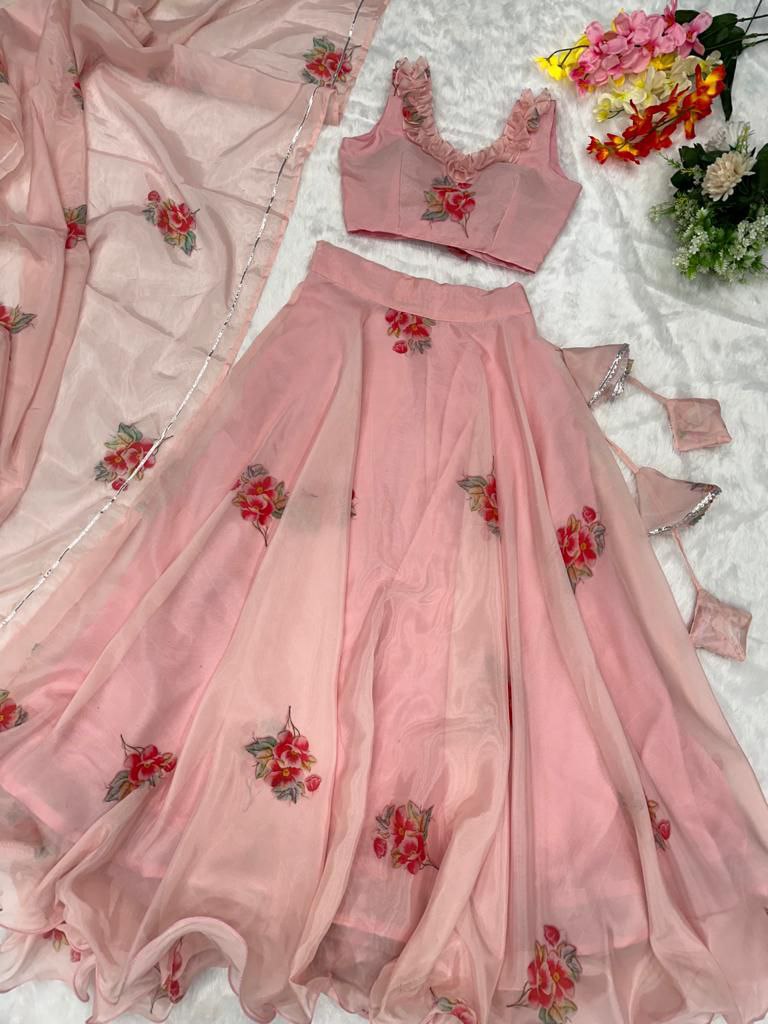 *lehnga* - Pure Jimmy organza silk digital printed lehnga. 8mtr flair lehnga with canvas patta