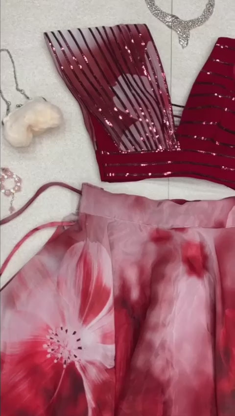 Elevate your allure with our Pure Jimmy Organza Silk Digital Printed Lehenga, a fusion of elegance and extravagance. The fully stitched ensemble features a size 38 padded blouse in pure Japan satin silk, adorned with a fanciful lace detail. The lehenga takes center stage, boasting captivating digital prints on pure Jimmy organza silk, an opulent 8-meter flair, and a canvas patta for added grandeur. Complementing the ensemble is a 2-meter Jimmy organza dupatta with a delicate lace border, creating a harmonious blend of modern sophistication and timeless charm. With its "In Stock" availability, this outfit beckons you to radiate grace at any special occasion, effortlessly marrying luxury with style.
