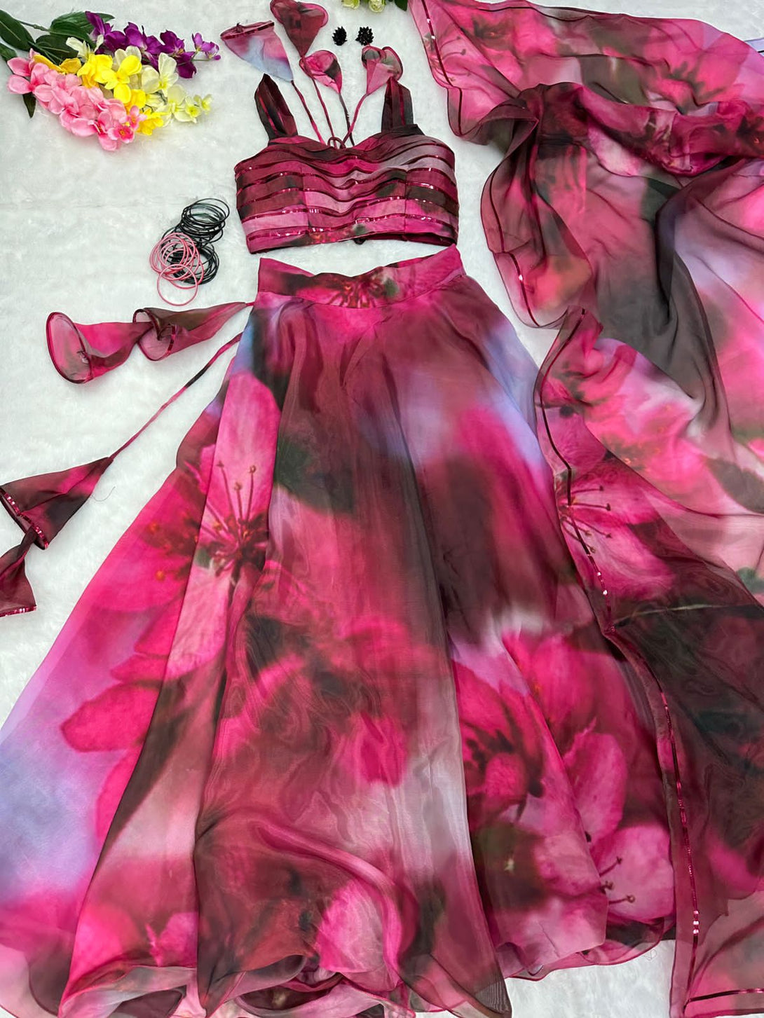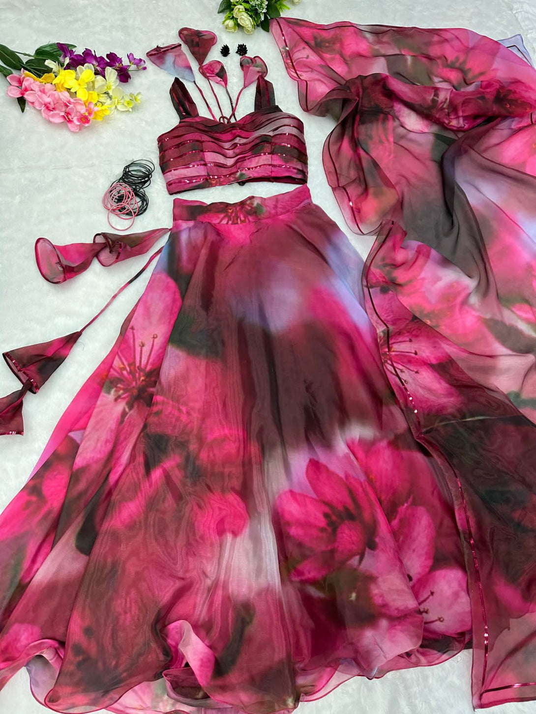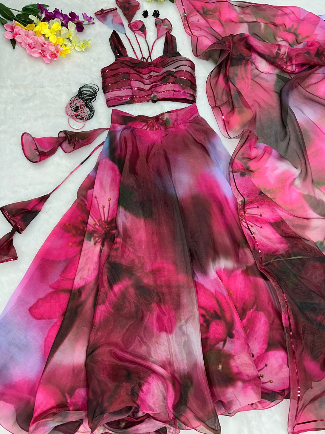 lehenga - Pure Jimmy organza silk digital printed lehnga . Huge flair lehnga with canvas patta