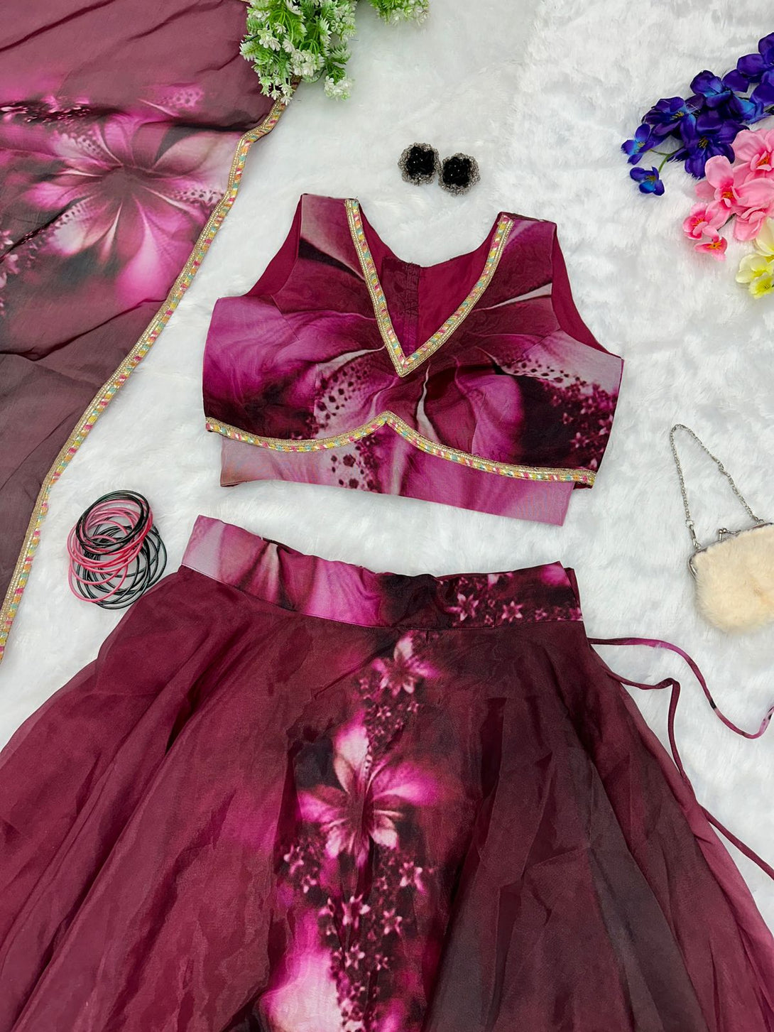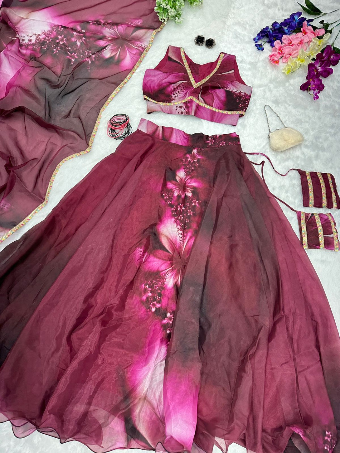 lehnga - Pure Jimmy organza silk digital printed lehnga. 8mtr flair lehnga with canvas patta