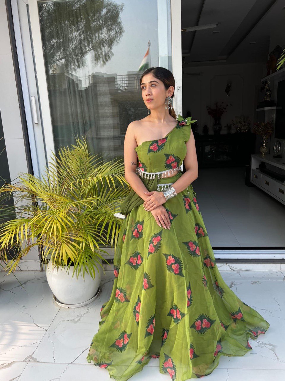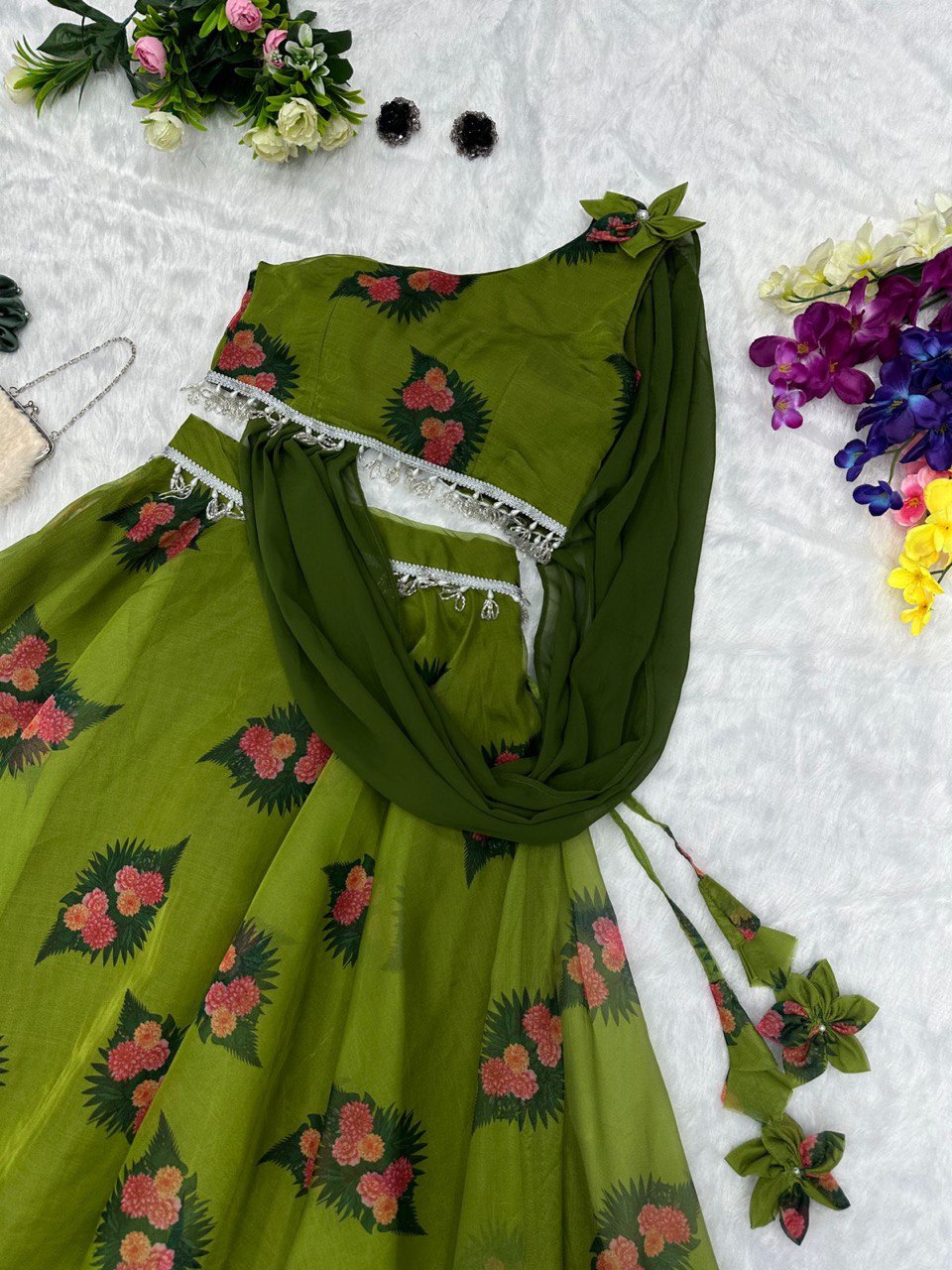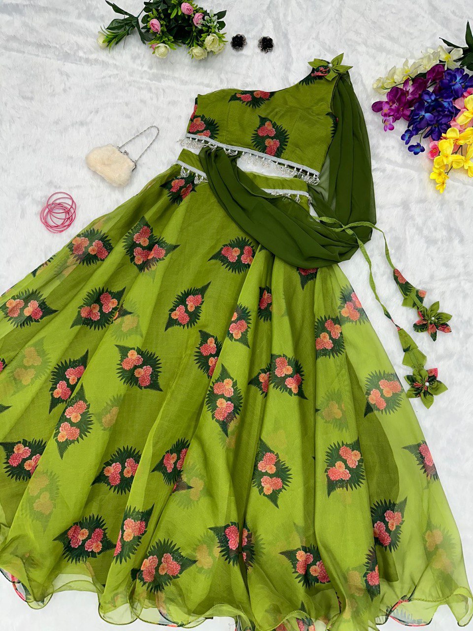 Step into elegance with a pure Jimmy Organza Silk Floral Printed Lehenga ensemble. The fully stitched blouse, made from pure Jimmy organza silk, features a size 38 padded blouse seamlessly attached to a dupatta, offering a graceful and cohesive look with a margin provided for added comfort. Lehenga will take centre stage with captivating floral prints on Pure Jimmy Organza Silk, showcasing an impressive 8-meter flair and enhanced by a canvas patta for added grandeur. Completing the ensemble is a lehenga pattern attached Georgette dupatta, adding a touch of sophistication. Pure Jimmy Organza Silk Digital Printed Lehenga is a celebration of refined taste and contemporary allure, ready to make a statement on any special occasion.