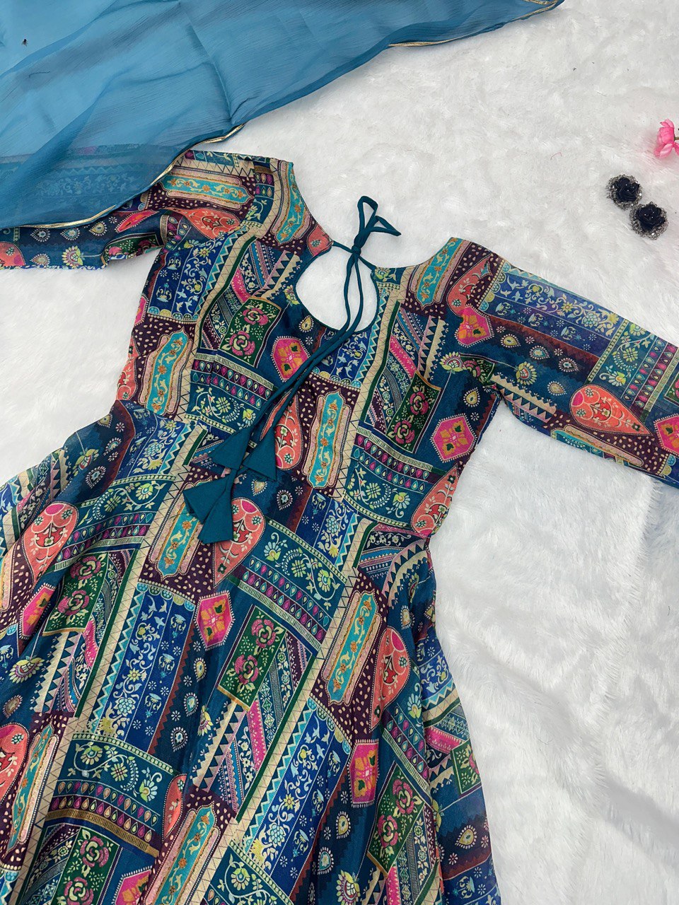 - Anarkali Gown * - pure Jimmy organza silk digital printed padded gown