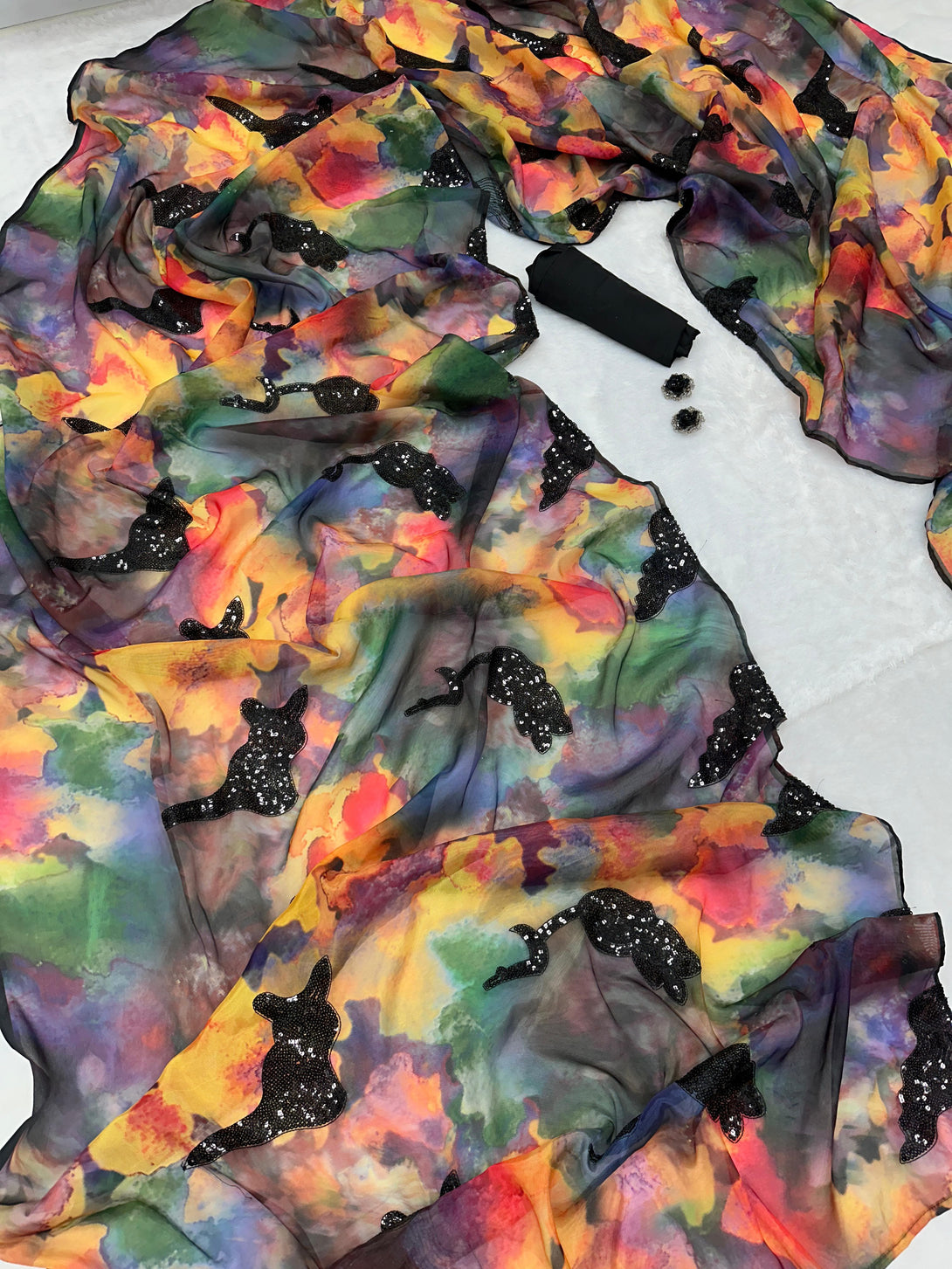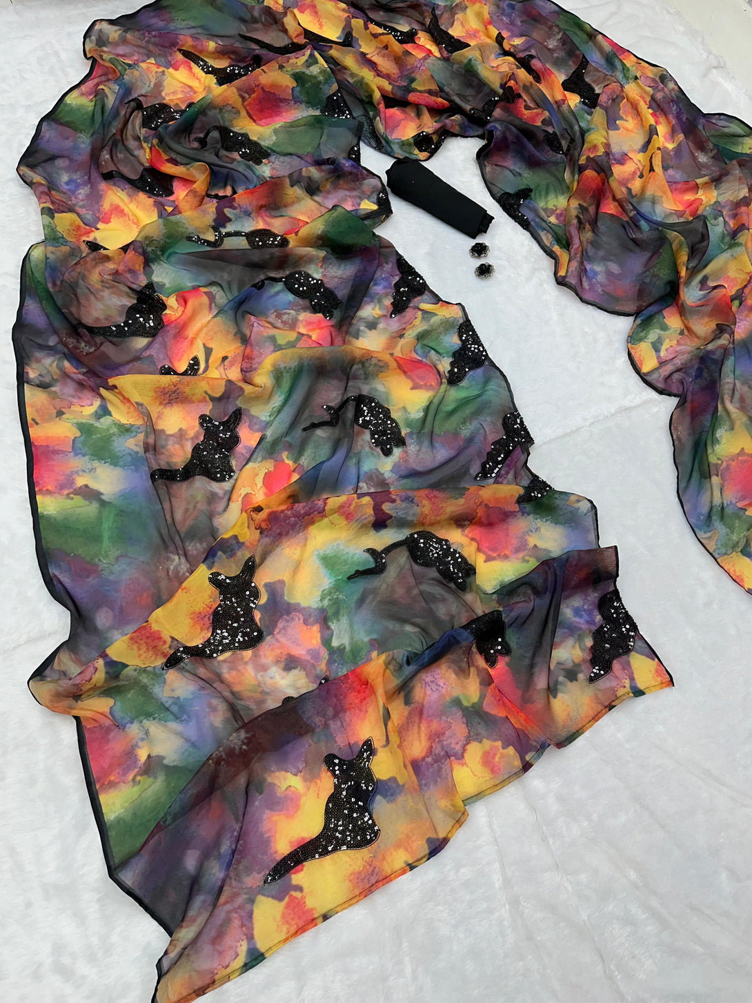 Saree - Pure Jimmy Organza silk Digital Printed saree with Embroidery Sequins work
