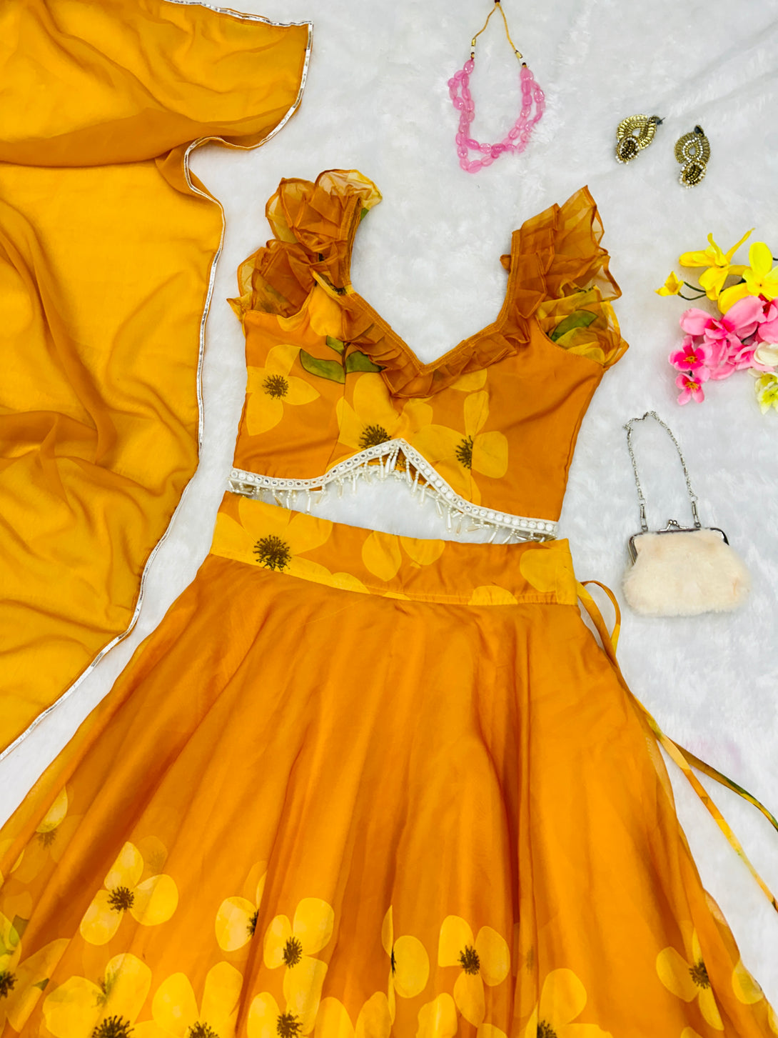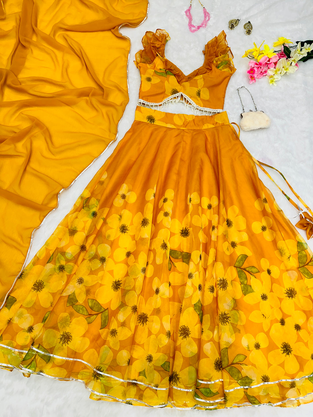 lehnga - Pure organza silk digital printed lehnga . 8mtr flair lehnga with canvas patta