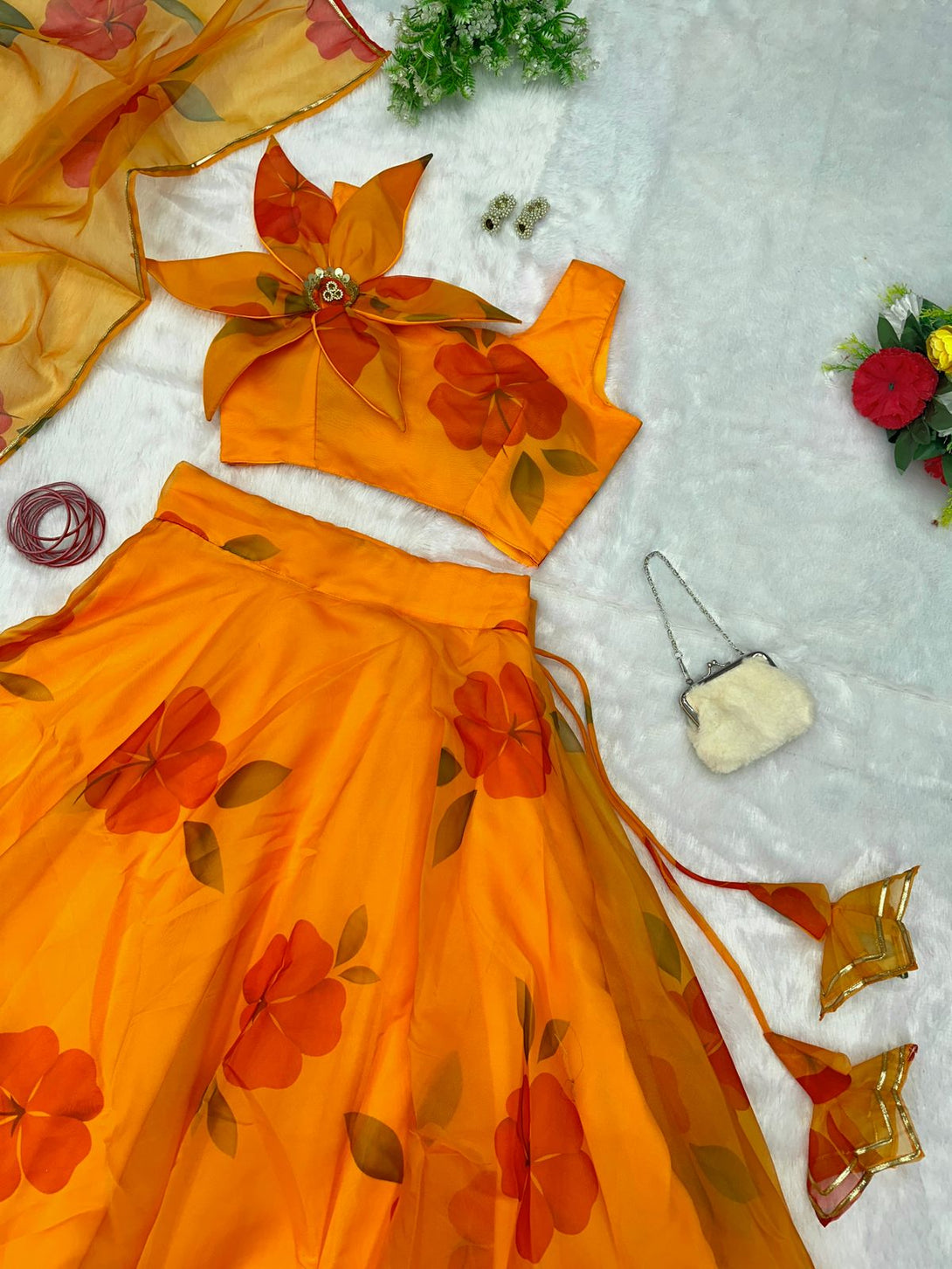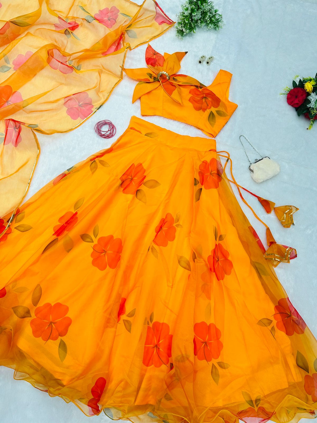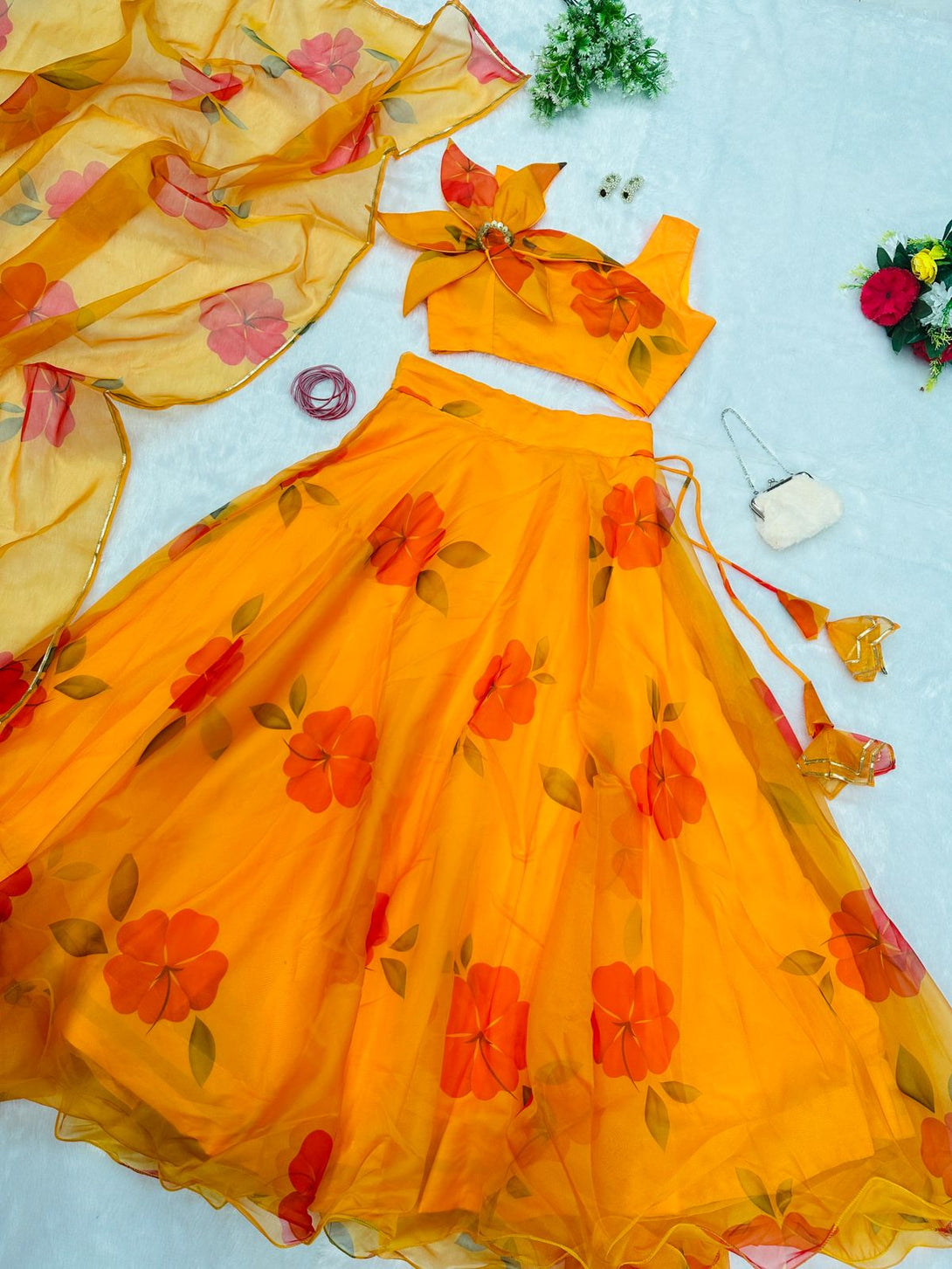 Elevate your style with the Pure Organza Silk Digital Printed Lehenga ensemble. The lehenga, crafted from pure organza silk, showcases captivating digital prints with an impressive 8-meter flair and is accentuated by a canvas patta for added grandeur. The ensemble is completed with an Organza Digital Printed dupatta featuring a designer lace border. Meticulously designed and "In Stock," this lehenga invites you to embrace elegance effortlessly at any special occasion. It seamlessly blends tradition and modernity, promising a timeless charm and contemporary allure.