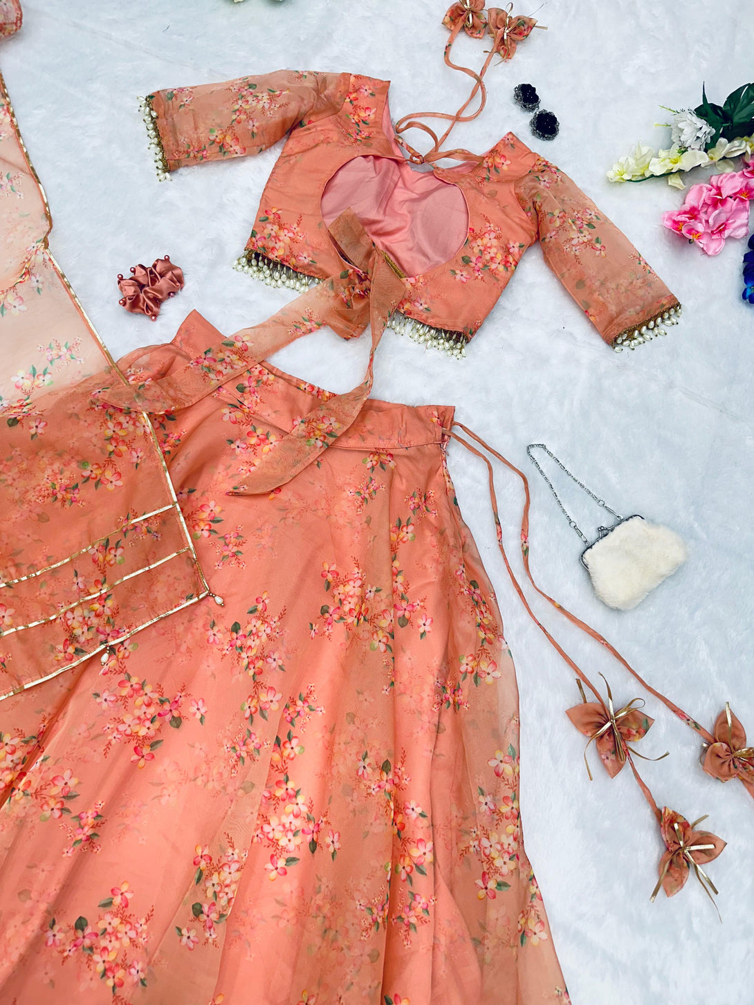 Pure organza silk digital printed lehenga