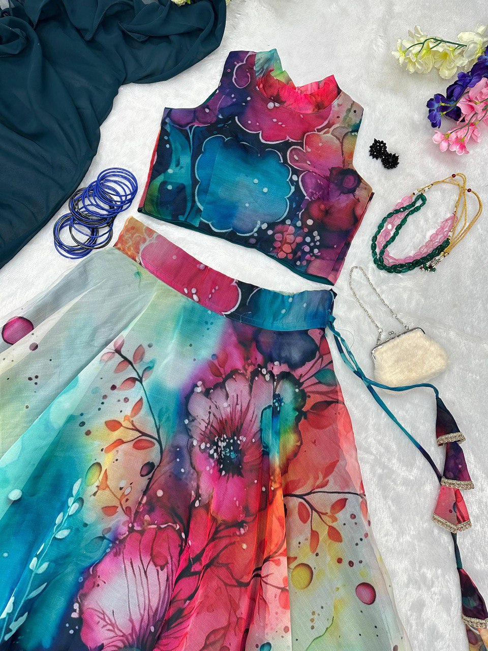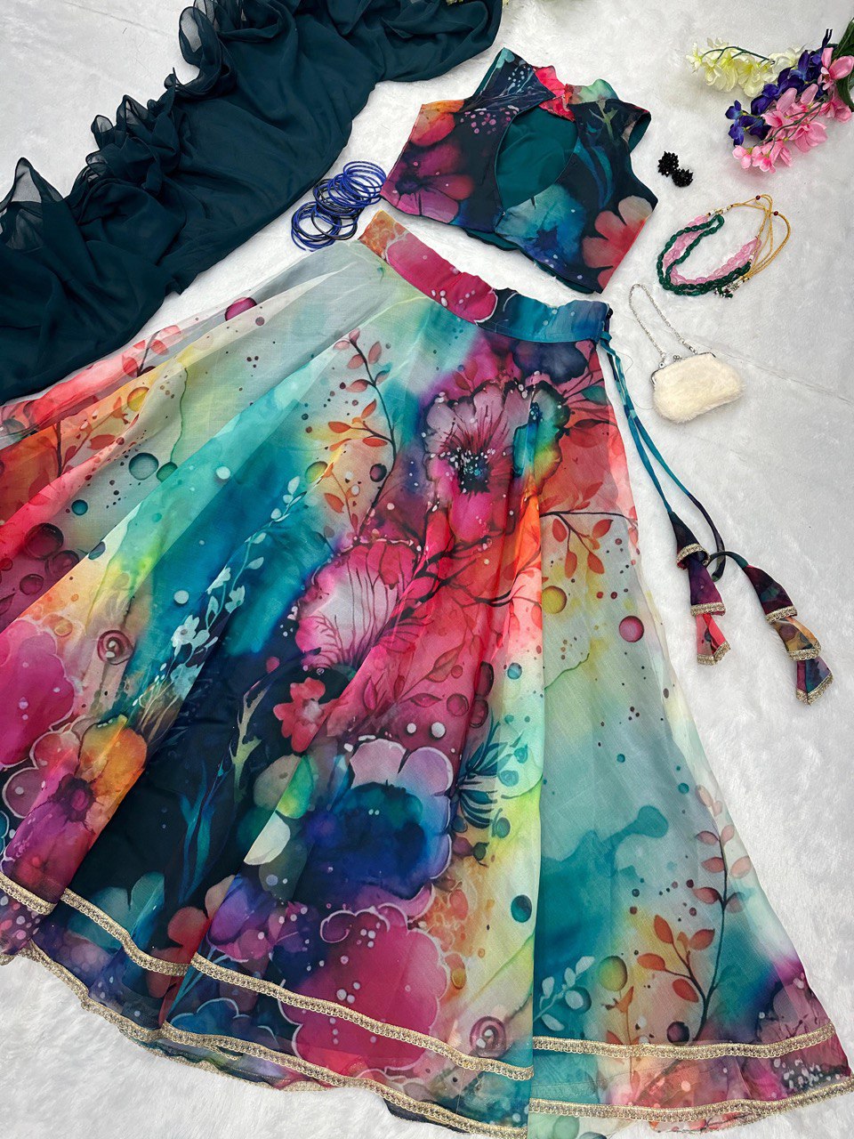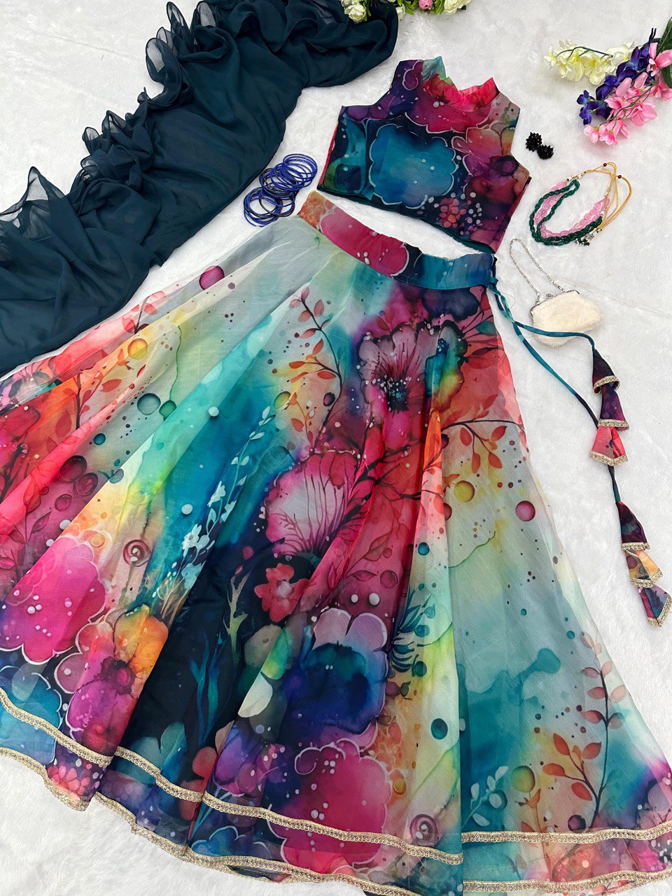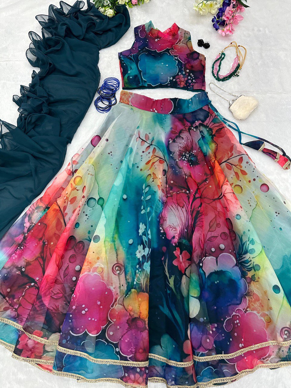 *lehnga* - Pure organza silk digital printed lehnga . 8mtr flair lehnga with Designer lace and canvas patta 🌸
