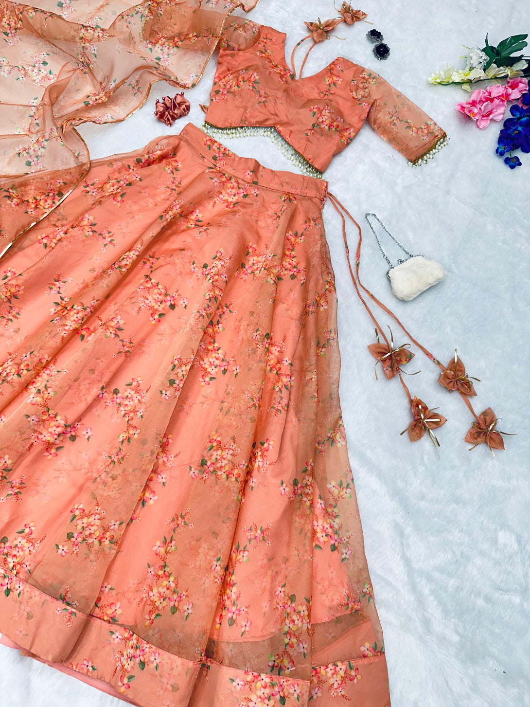 lehnga - Pure organza silk digital printed lehnga . 8mtr flair lehnga with canvas patta
