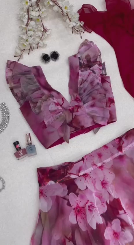 Pure organza silk digital printed lehenga