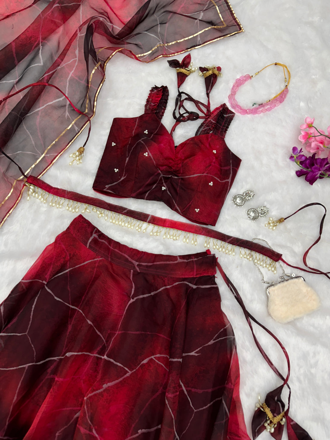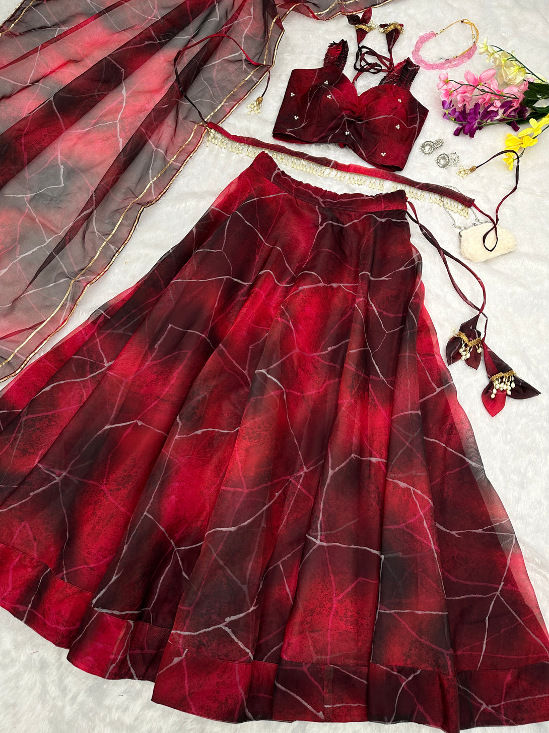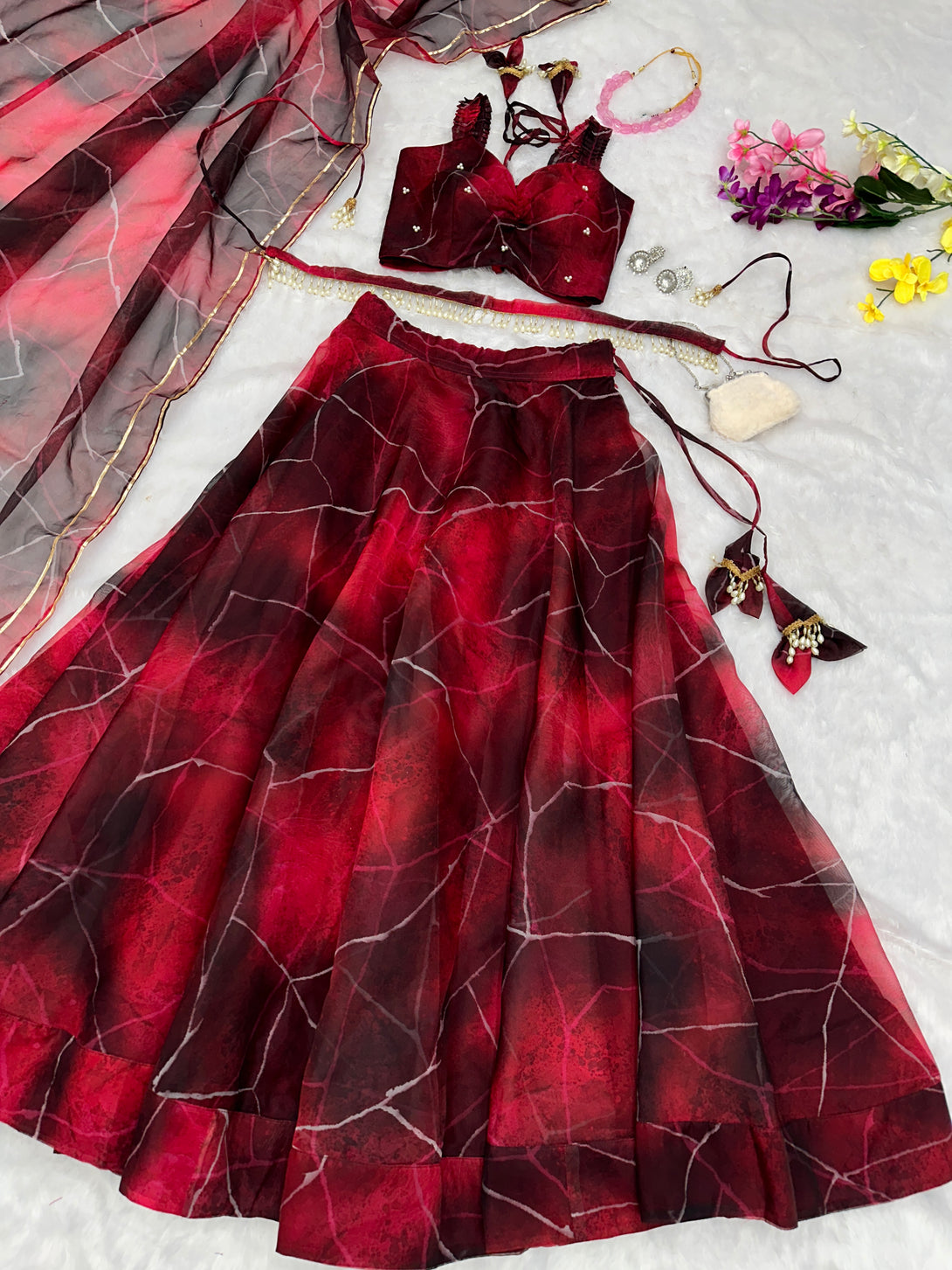 lehnga - Pure organza silk digital printed lehnga. 8mtr flair lehnga with canvas patta