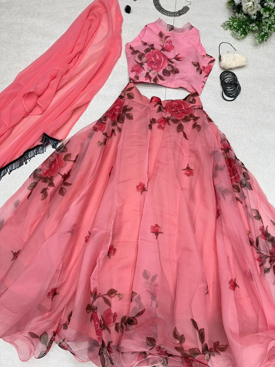 Dive into elegance with our Pure Organza Silk Digital Printed Lehenga ensemble – a celebration of grace and style. The fully stitched Blouse, crafted from pure silk organza, offers a flawless fit in size 38 with padding and a thoughtful margin for added comfort. The Lehenga is a visual delight, featuring captivating digital prints on pure organza silk, with an impressive 8-meter flair and a canvas patta for a twirl-worthy appearance. Completing the ensemble is a Georgette Dupatta adorned with a Designer lace border, adding a touch of sophistication to the overall look. This fully stitched Pure Organza Silk Digital Printed Lehenga set is not just an outfit; it's an expression of refined style, ready to make you stand out at any special occasion. Embrace the allure of pure organza silk and step into the limelight with confidence.