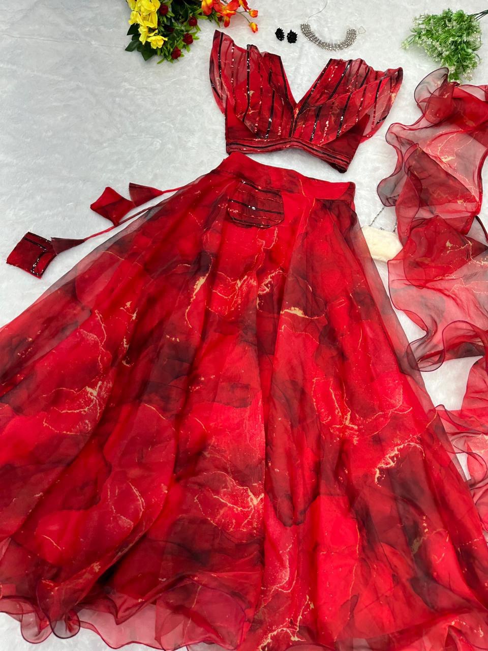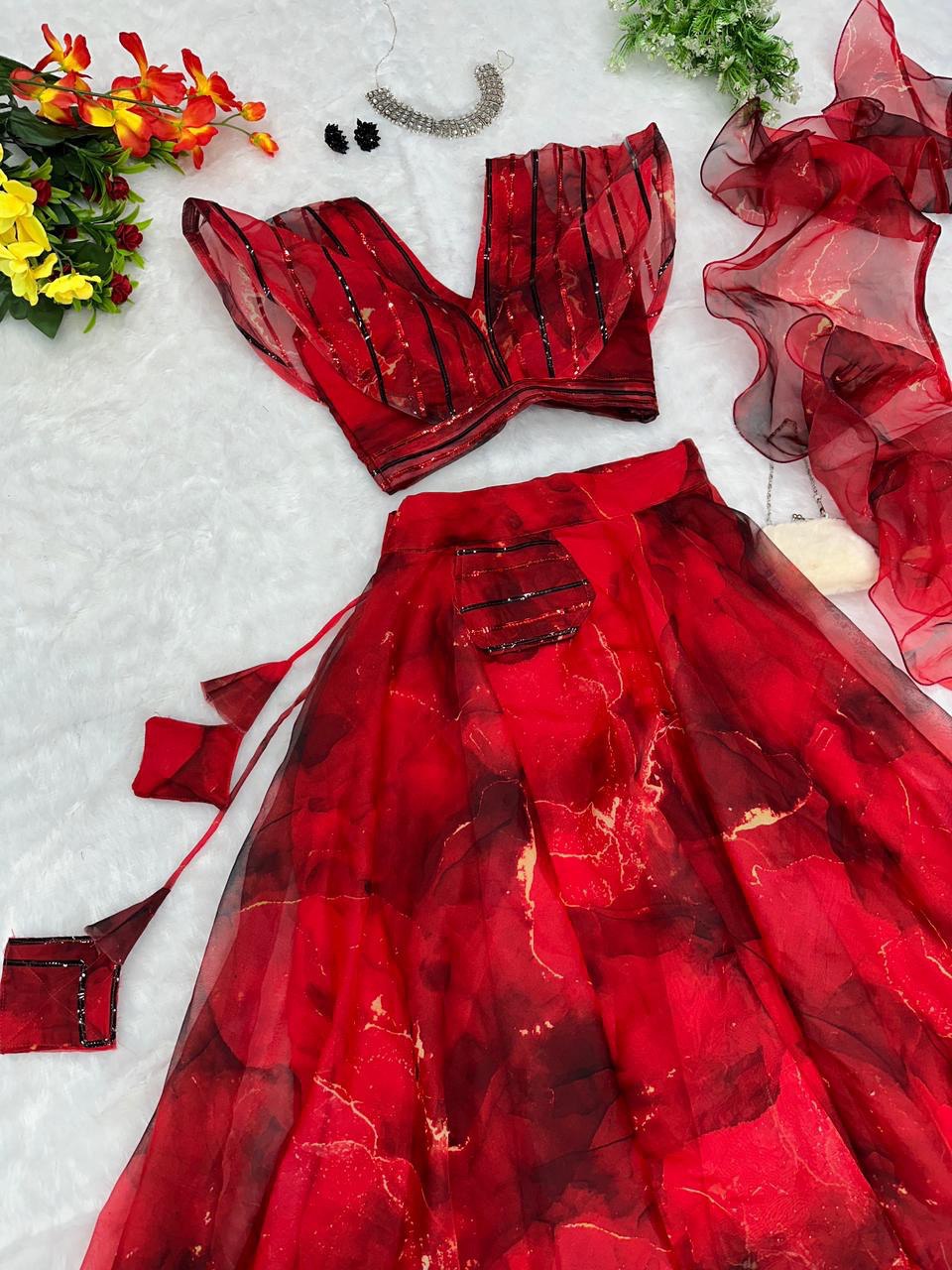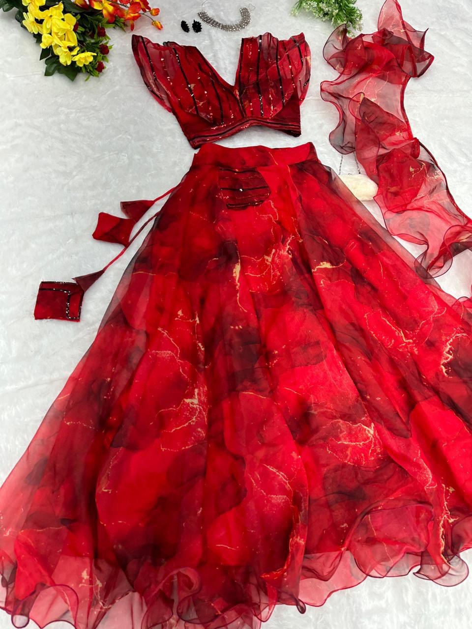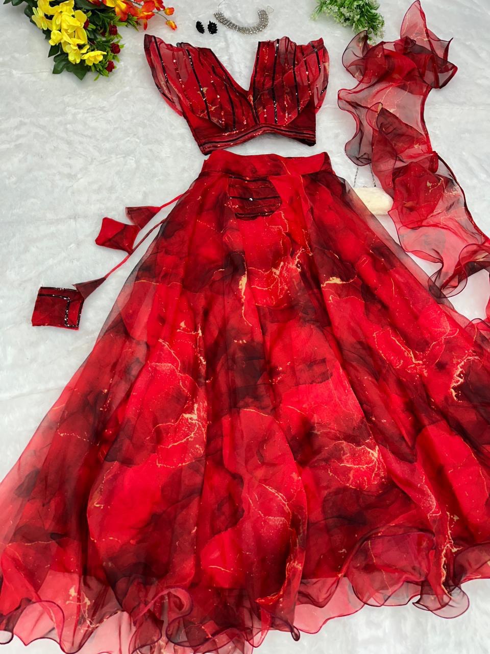 Pure organza silk digital printed lehenga