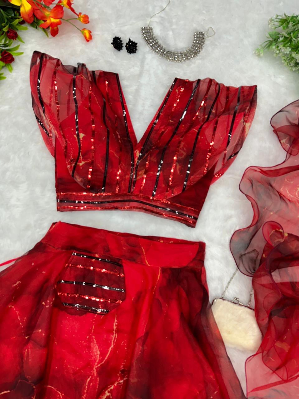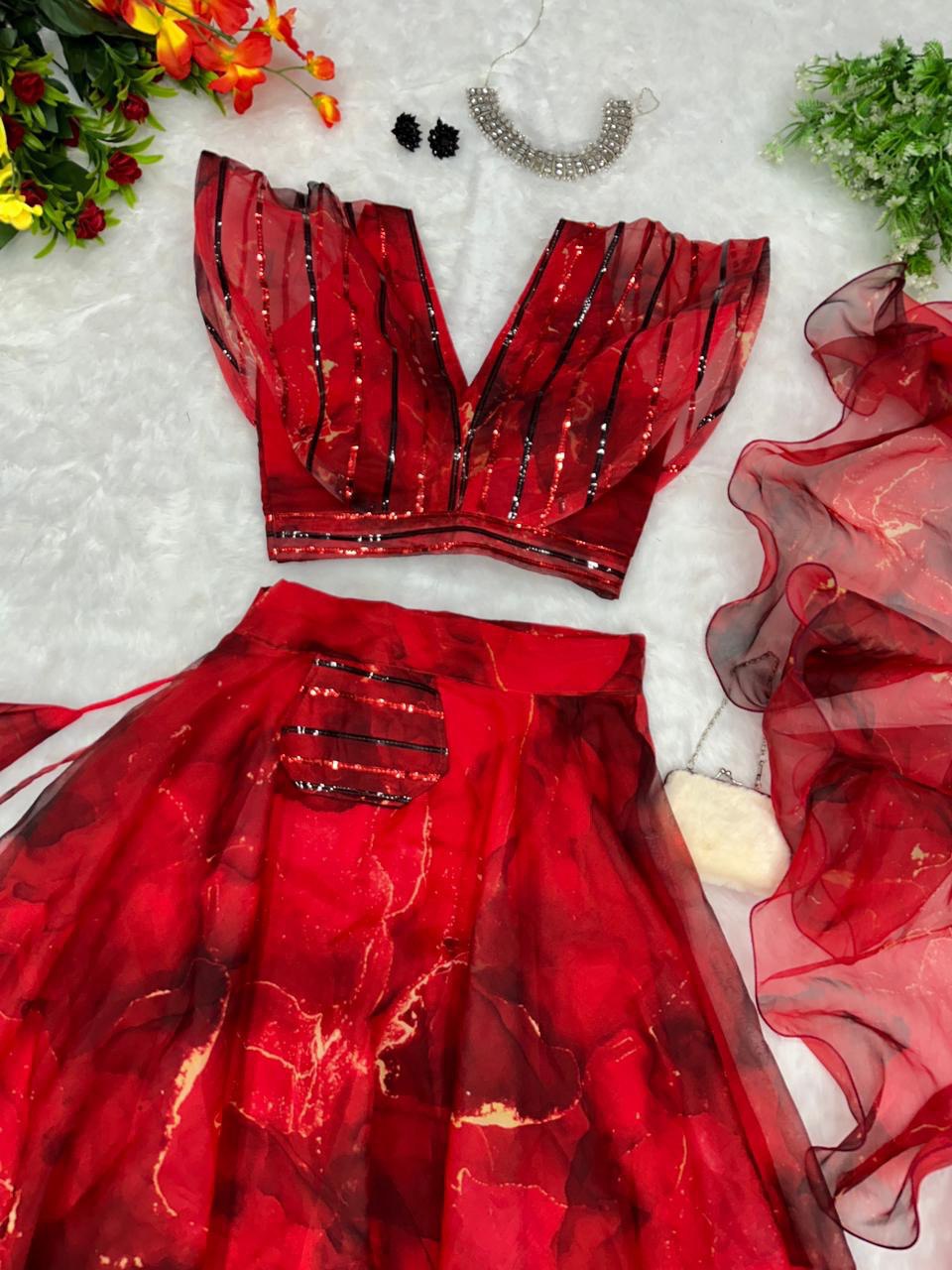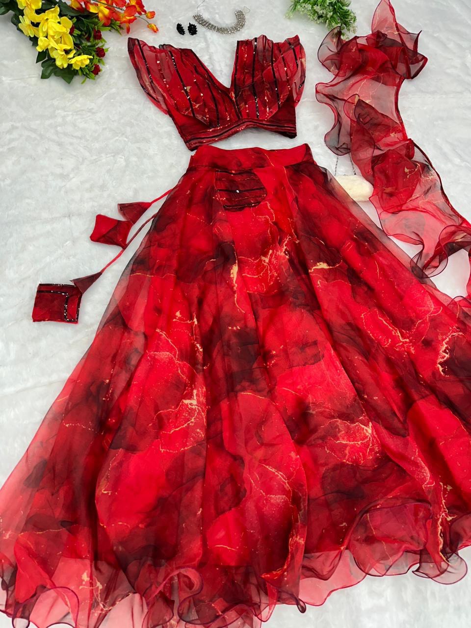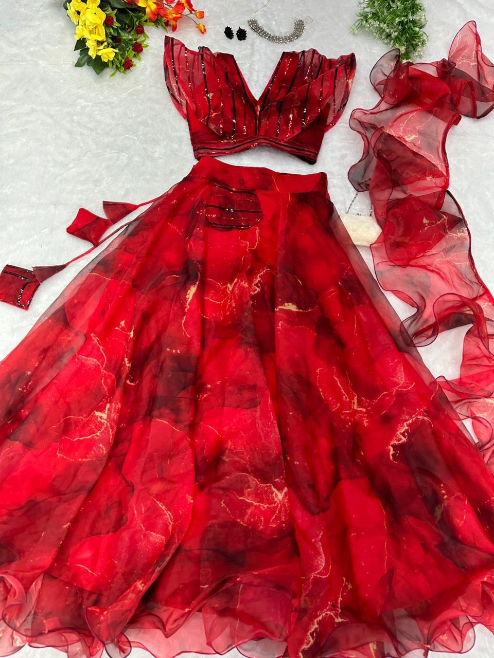Pure organza silk digital printed lehenga