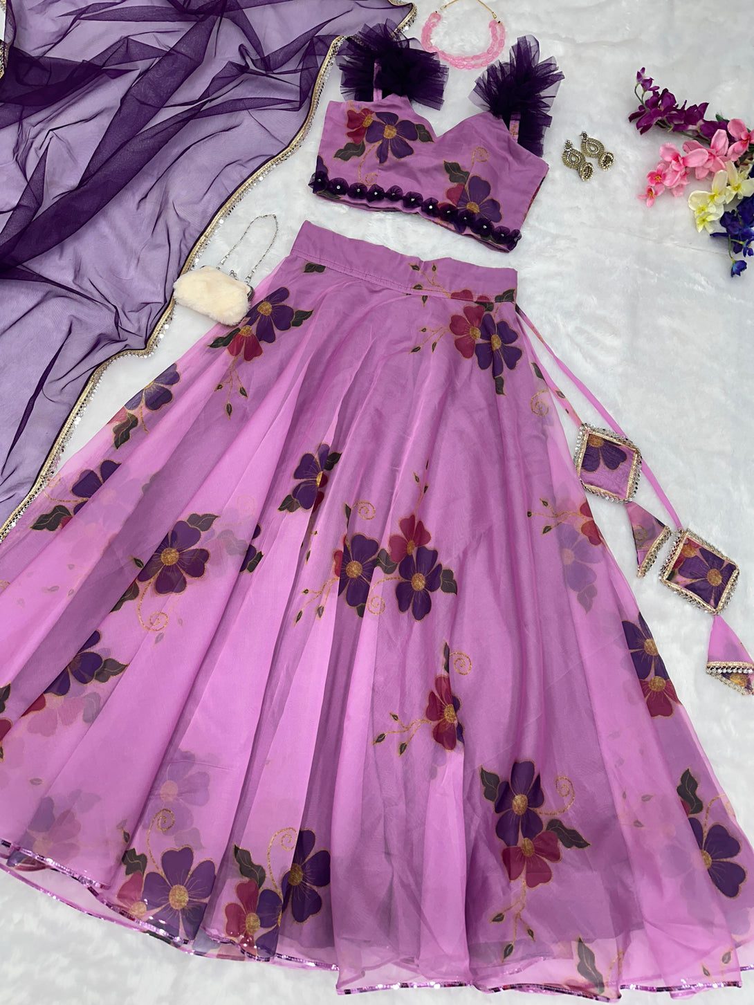 Pure organza silk floral printed lehenga