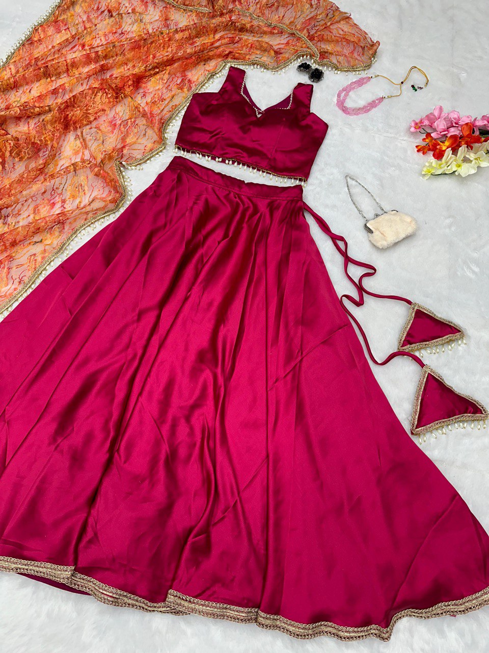 *lehnga* - Pure satin silk lehnga . 8mtr flair lehnga with canvas patta