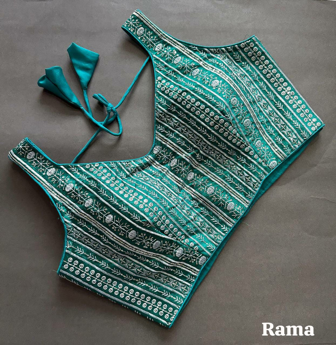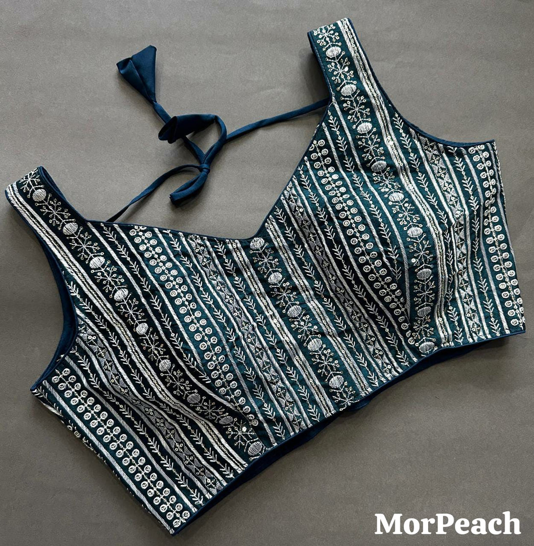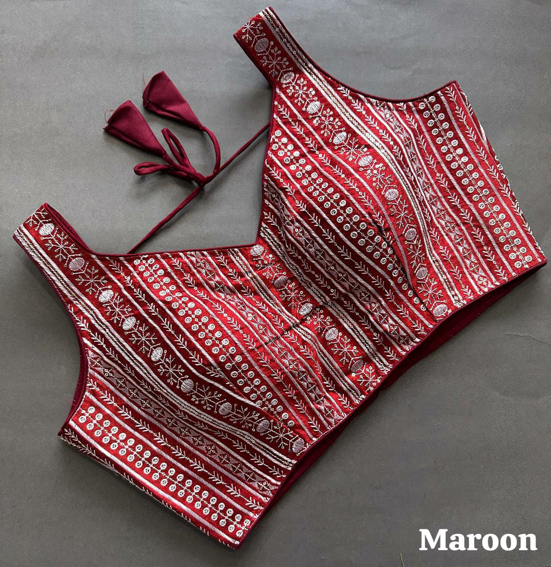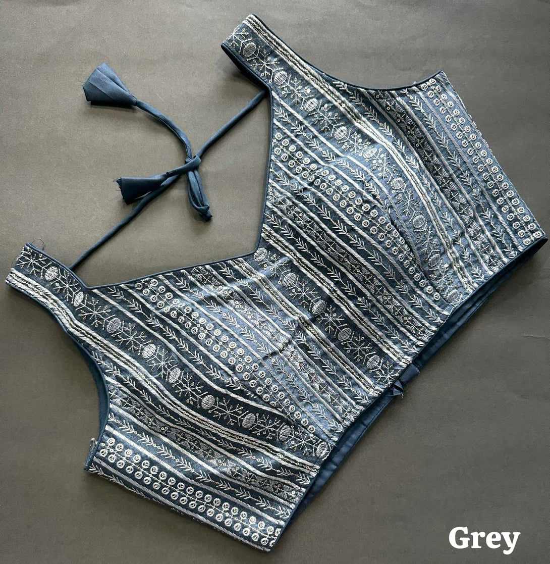Immerse yourself in the allure of Lucknowi craftsmanship with our Raw Silk Alterable Readymade Blouse, featuring exquisite White Thread Sequence Work. The Bollywood V Neck design in a captivating London Dreams pattern adds a touch of glamour and sophistication to your ensemble. The Back with Hook opening ensures easy wear, allowing you to effortlessly showcase the detailed White Thread Sequence and Embroidery Work. Crafted from high-quality Raw Silk, this blouse not only offers a luxurious feel but also provides the versatility to elevate your style on various occasions. Step into the spotlight with this unique blend of tradition and contemporary design, turning every moment into a glamorous affair. Redefine your fashion statement with the timeless elegance of our Lucknowi White Thread Sequence Work Blouse and make heads turn wherever you go. Elevate your saree ensemble with this exquisite blouse, where every detail speaks of sophistication and craftsmanship.