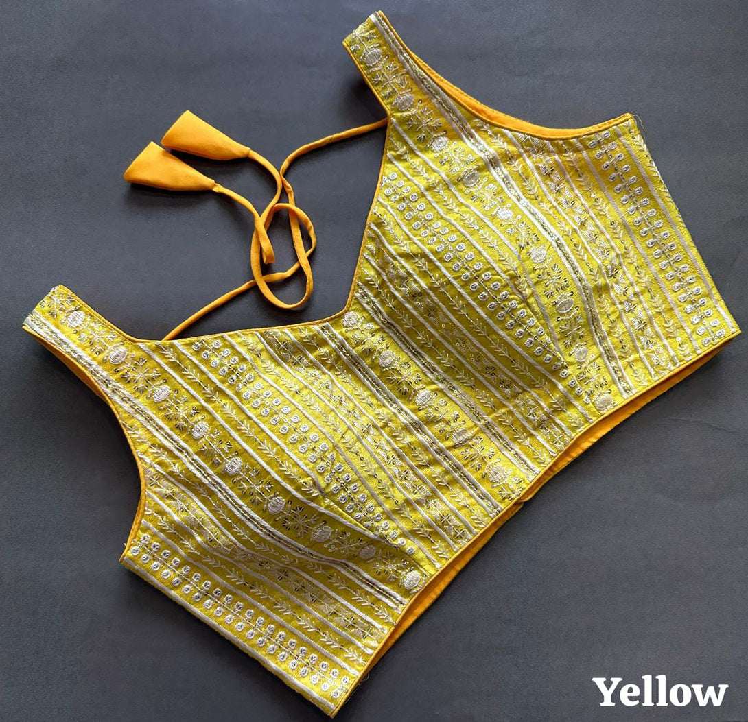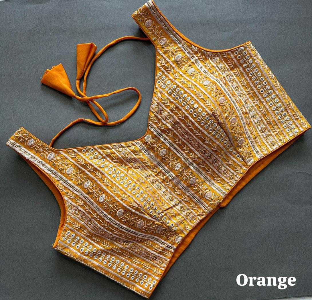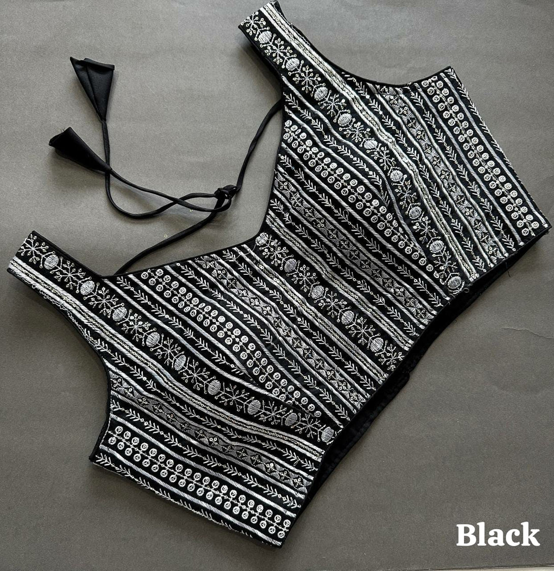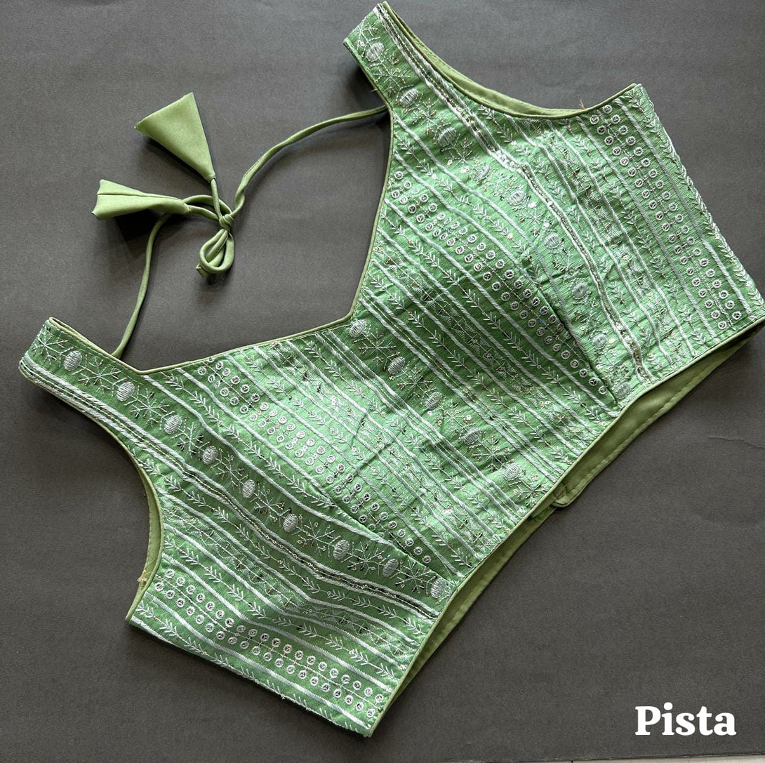 Immerse yourself in the allure of Lucknowi craftsmanship with our Raw Silk Alterable Readymade Blouse, featuring exquisite White Thread Sequence Work. The Bollywood V Neck design in a captivating London Dreams pattern adds a touch of glamour and sophistication to your ensemble. The Back with Hook opening ensures easy wear, allowing you to effortlessly showcase the detailed White Thread Sequence and Embroidery Work. Crafted from high-quality Raw Silk, this blouse not only offers a luxurious feel but also provides the versatility to elevate your style on various occasions. Step into the spotlight with this unique blend of tradition and contemporary design, turning every moment into a glamorous affair. Redefine your fashion statement with the timeless elegance of our Lucknowi White Thread Sequence Work Blouse and make heads turn wherever you go. Elevate your saree ensemble with this exquisite blouse, where every detail speaks of sophistication and craftsmanship.