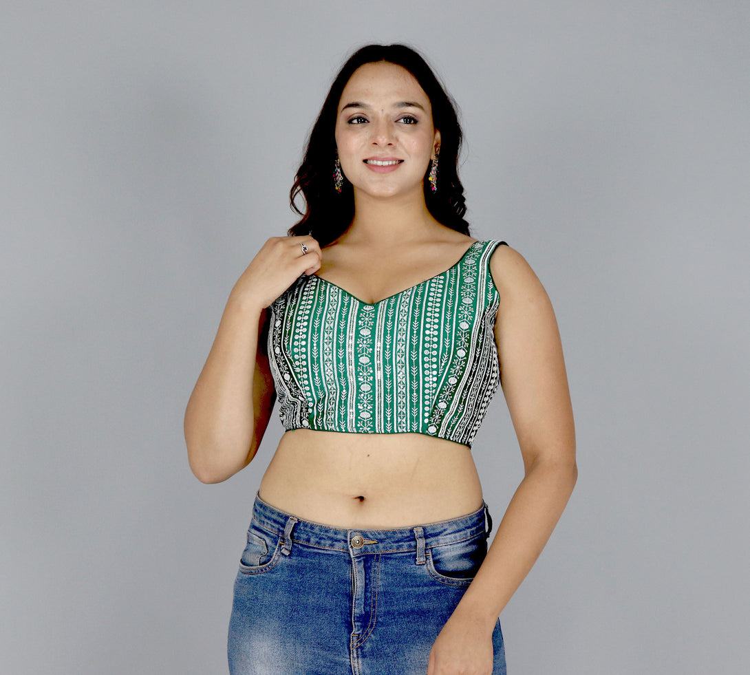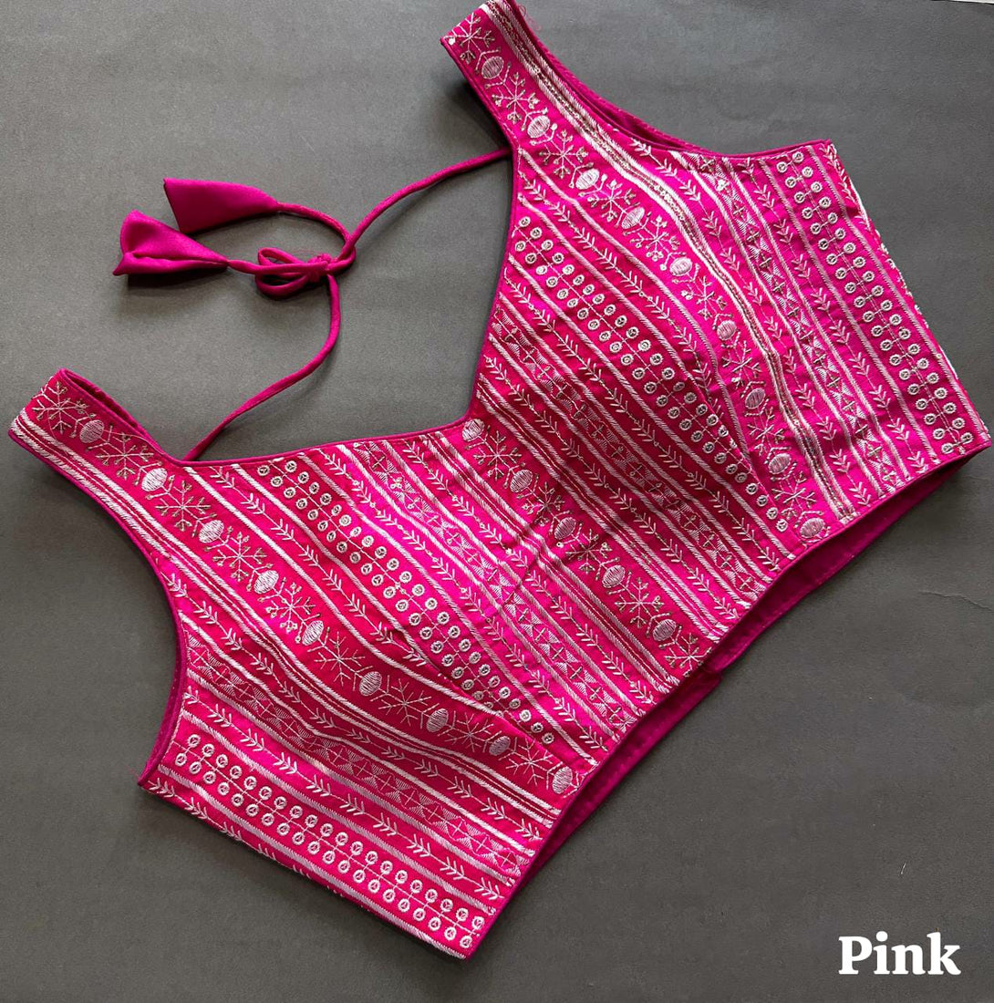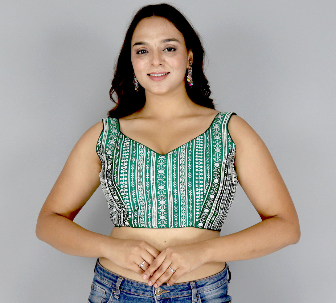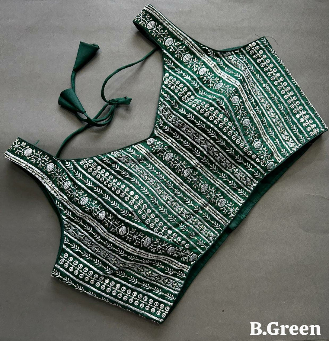 Immerse yourself in the allure of Lucknowi craftsmanship with our Raw Silk Alterable Readymade Blouse, featuring exquisite White Thread Sequence Work. The Bollywood V Neck design in a captivating London Dreams pattern adds a touch of glamour and sophistication to your ensemble. The Back with Hook opening ensures easy wear, allowing you to effortlessly showcase the detailed White Thread Sequence and Embroidery Work. Crafted from high-quality Raw Silk, this blouse not only offers a luxurious feel but also provides the versatility to elevate your style on various occasions. Step into the spotlight with this unique blend of tradition and contemporary design, turning every moment into a glamorous affair. Redefine your fashion statement with the timeless elegance of our Lucknowi White Thread Sequence Work Blouse and make heads turn wherever you go. Elevate your saree ensemble with this exquisite blouse, where every detail speaks of sophistication and craftsmanship.