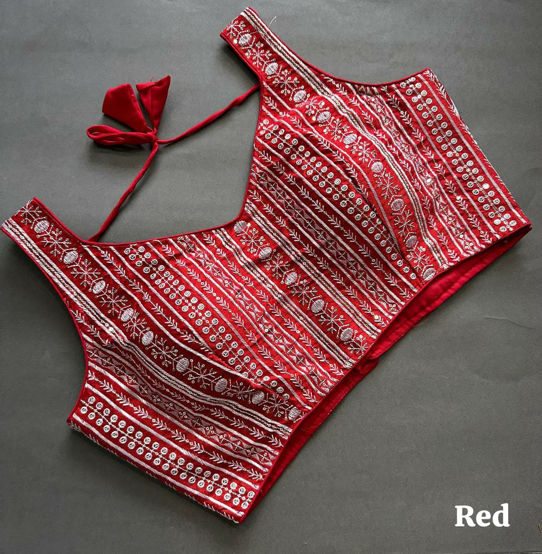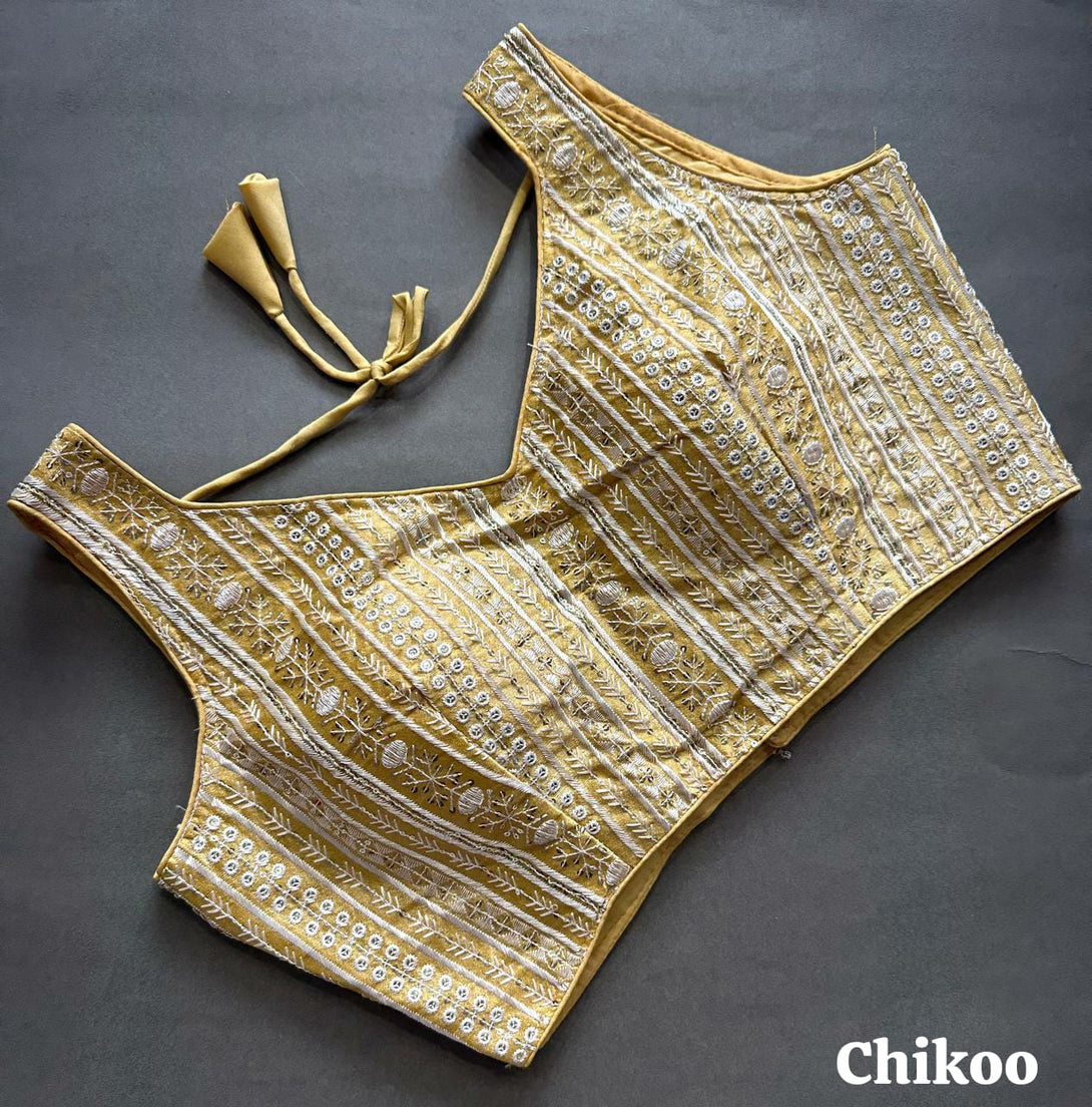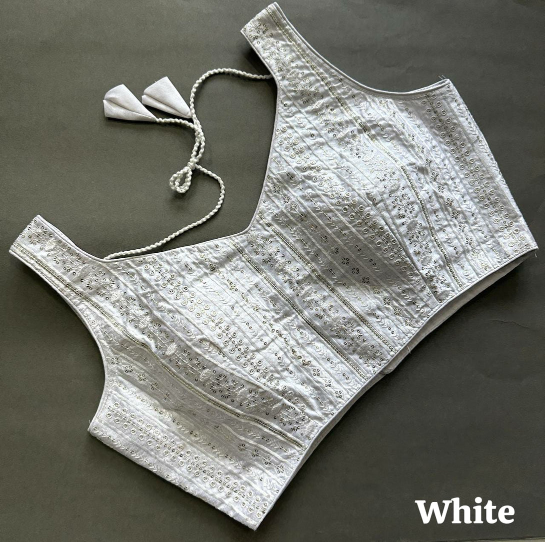 Lucknowi White Thread Sequence Work Silk Designer Blouse