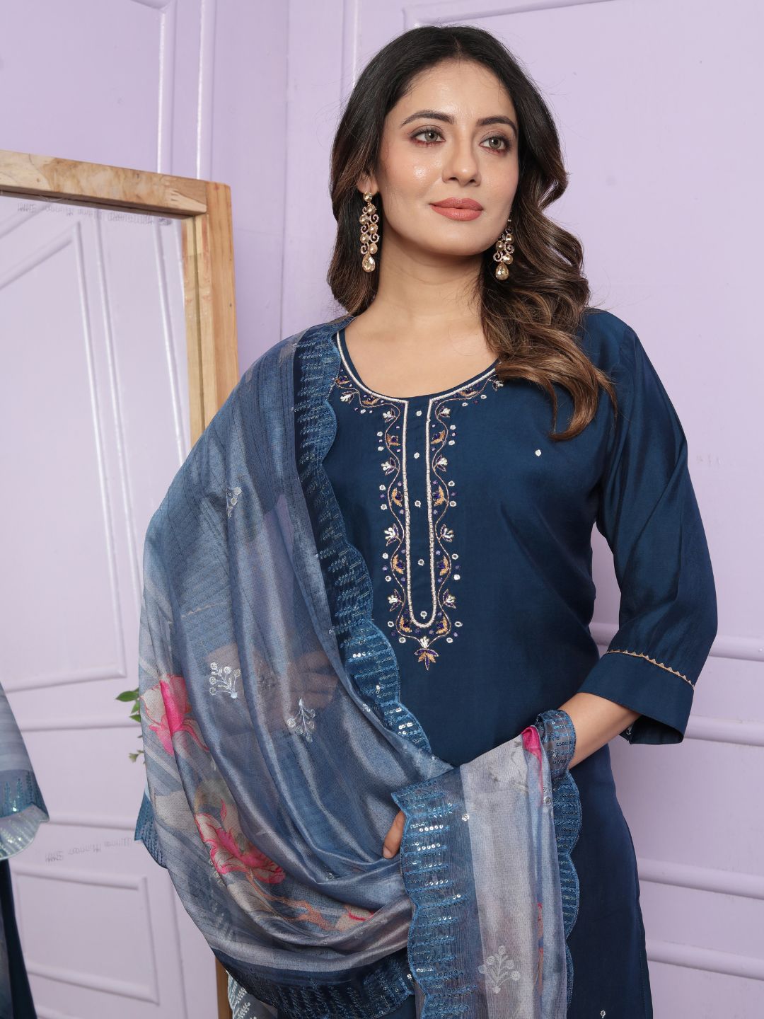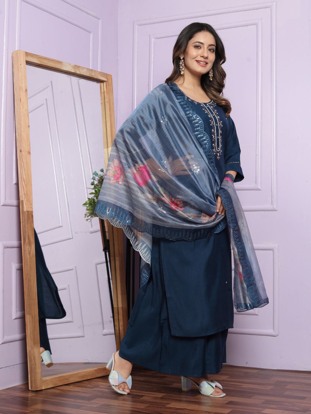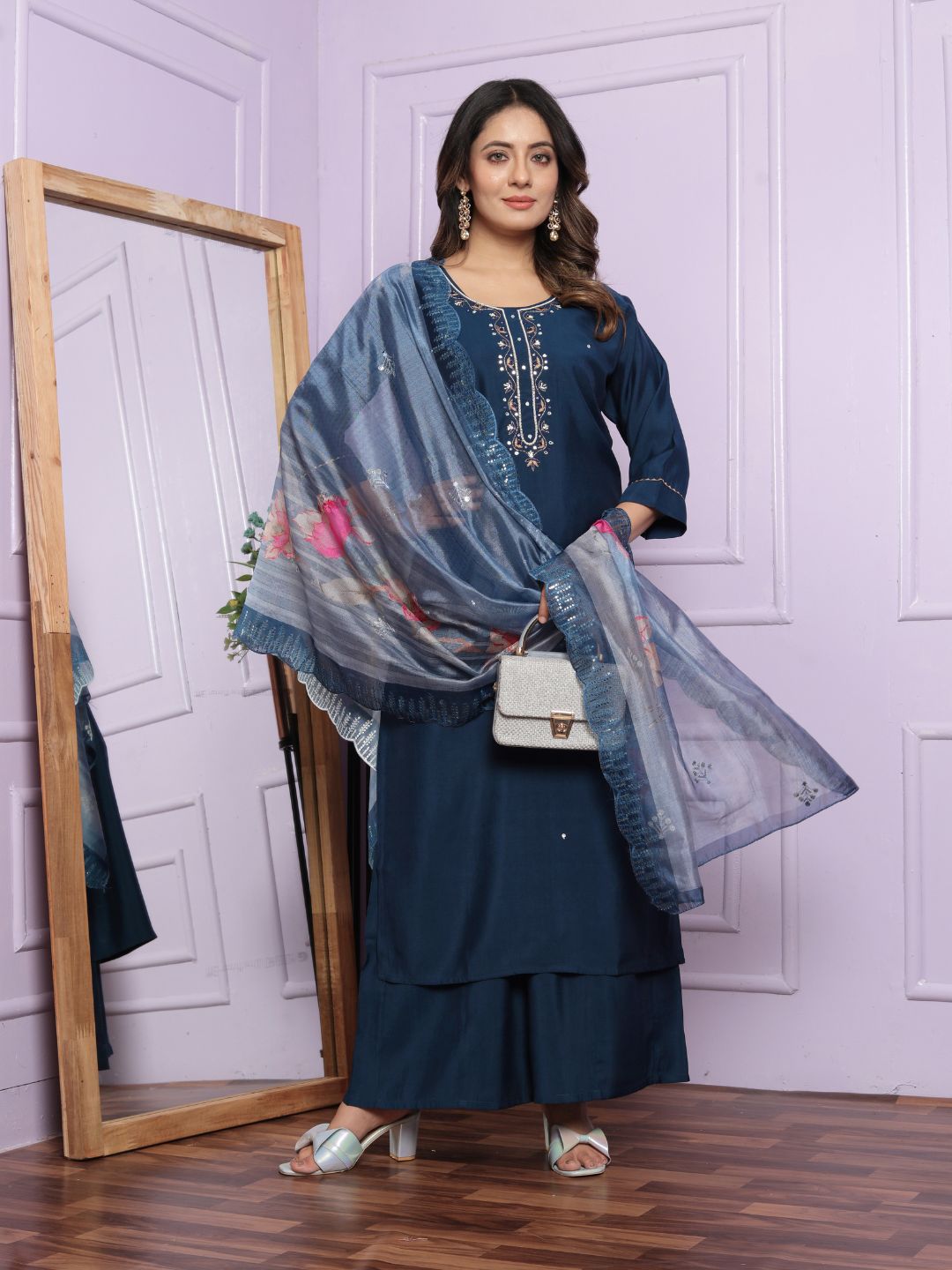 Style :- Round Neck , Straight Kurti With Divider Plazzo