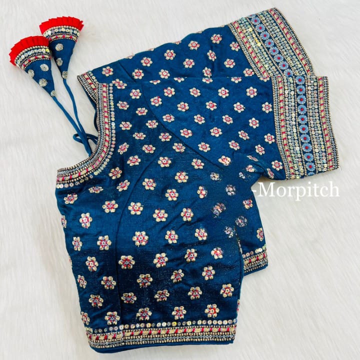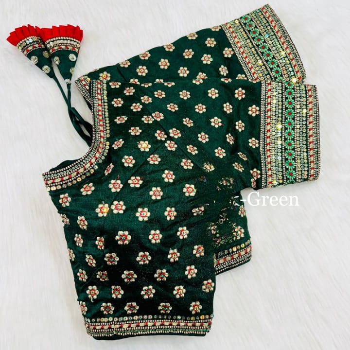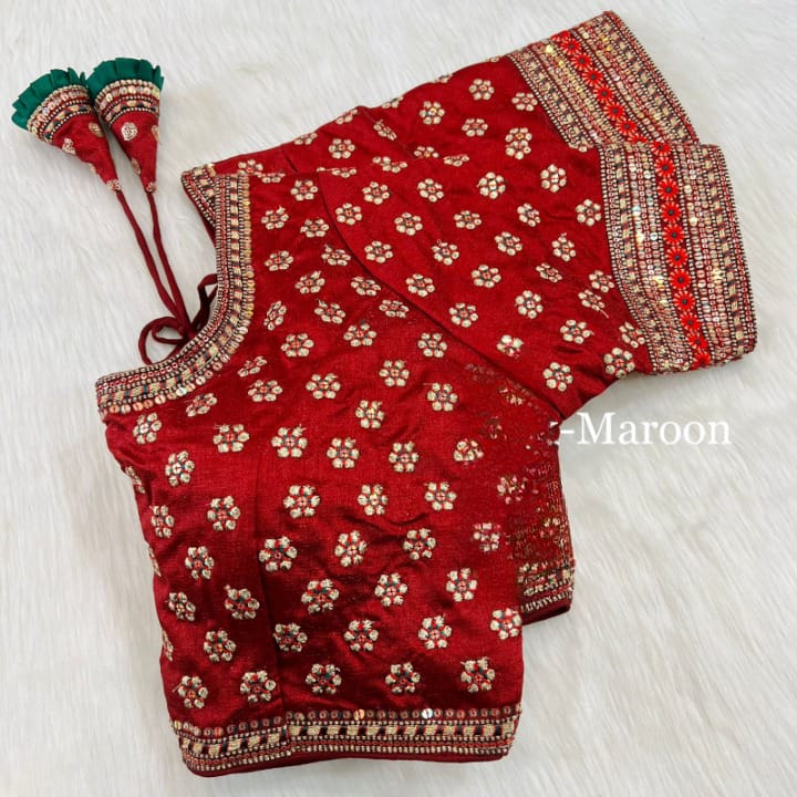 Drape yourself in opulence with our Heavy Pure Cobra Silk Blouse. This Beautiful Romantic-2 Bridal Design is a true work of art, featuring stunning details such as beautiful latkans and 10-inch long sleeves enhanced with Heavy Soft Padding. The Front Open Style, complemented by Handmade Hooks, introduces a contemporary edge to your attire. Meticulously crafted from premium Heavy Pure Cobra Silk, this blouse redefines bridal sophistication, ensuring a harmonious blend of comfort and style. Illuminate your special occasion with the sheer luxury and intricate design of this silk masterpiece, curated to leave a lasting impression.
