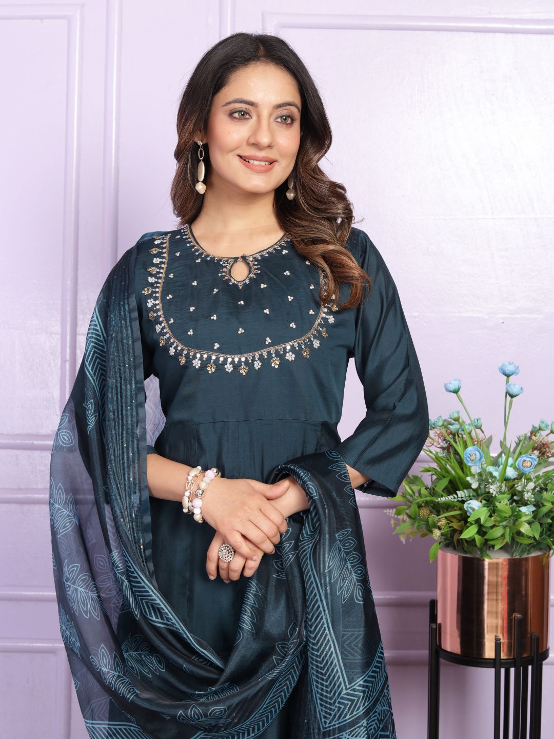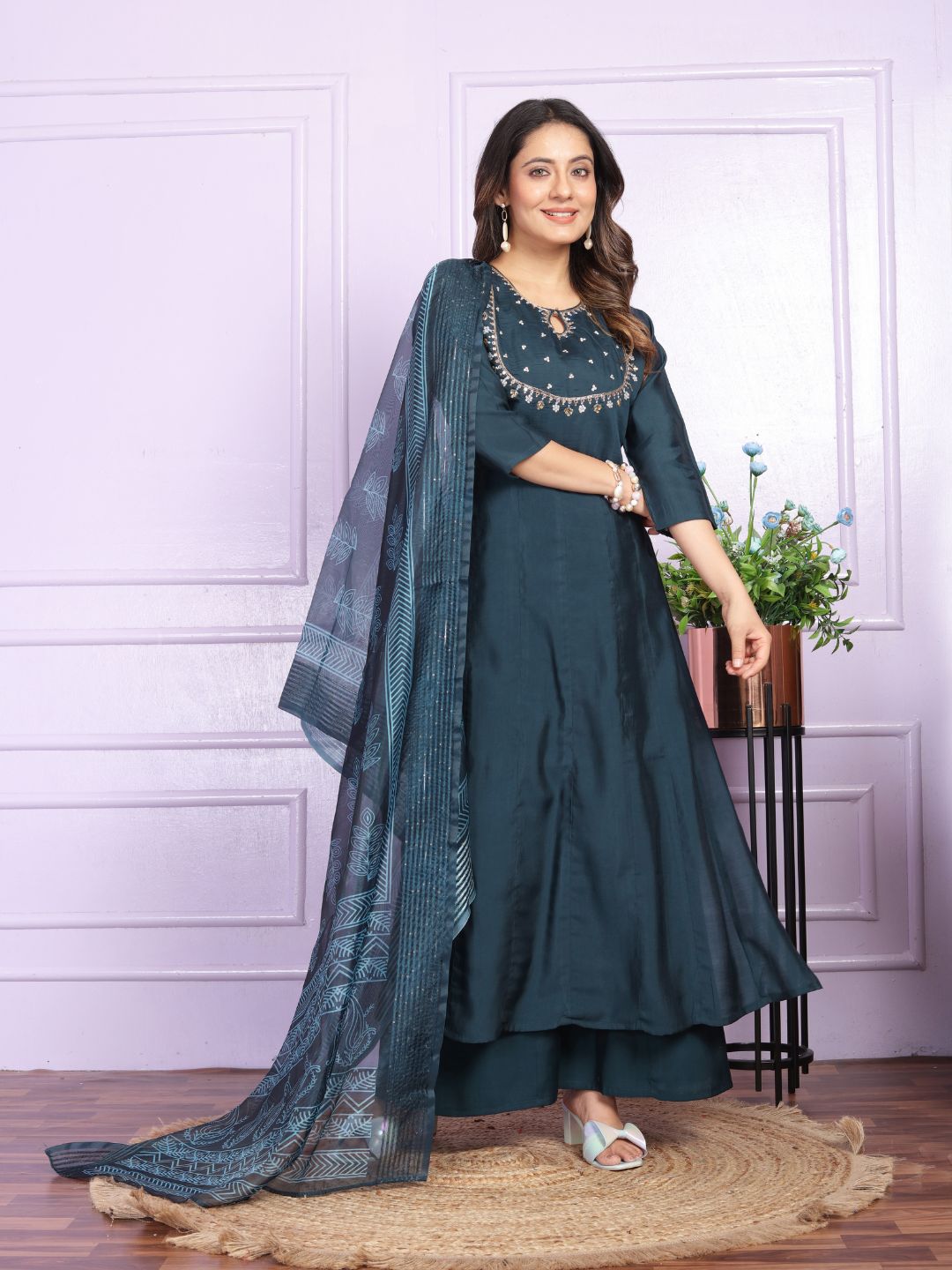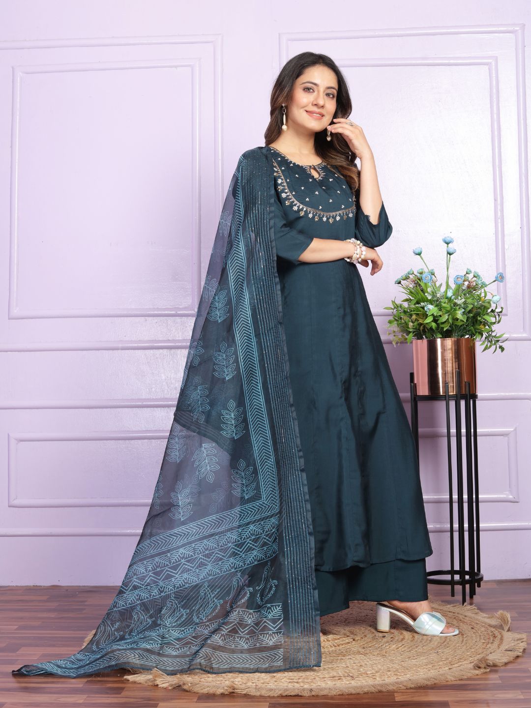 Style :- Round Neck , Kali Pattern Side Cut Kurti With Pent