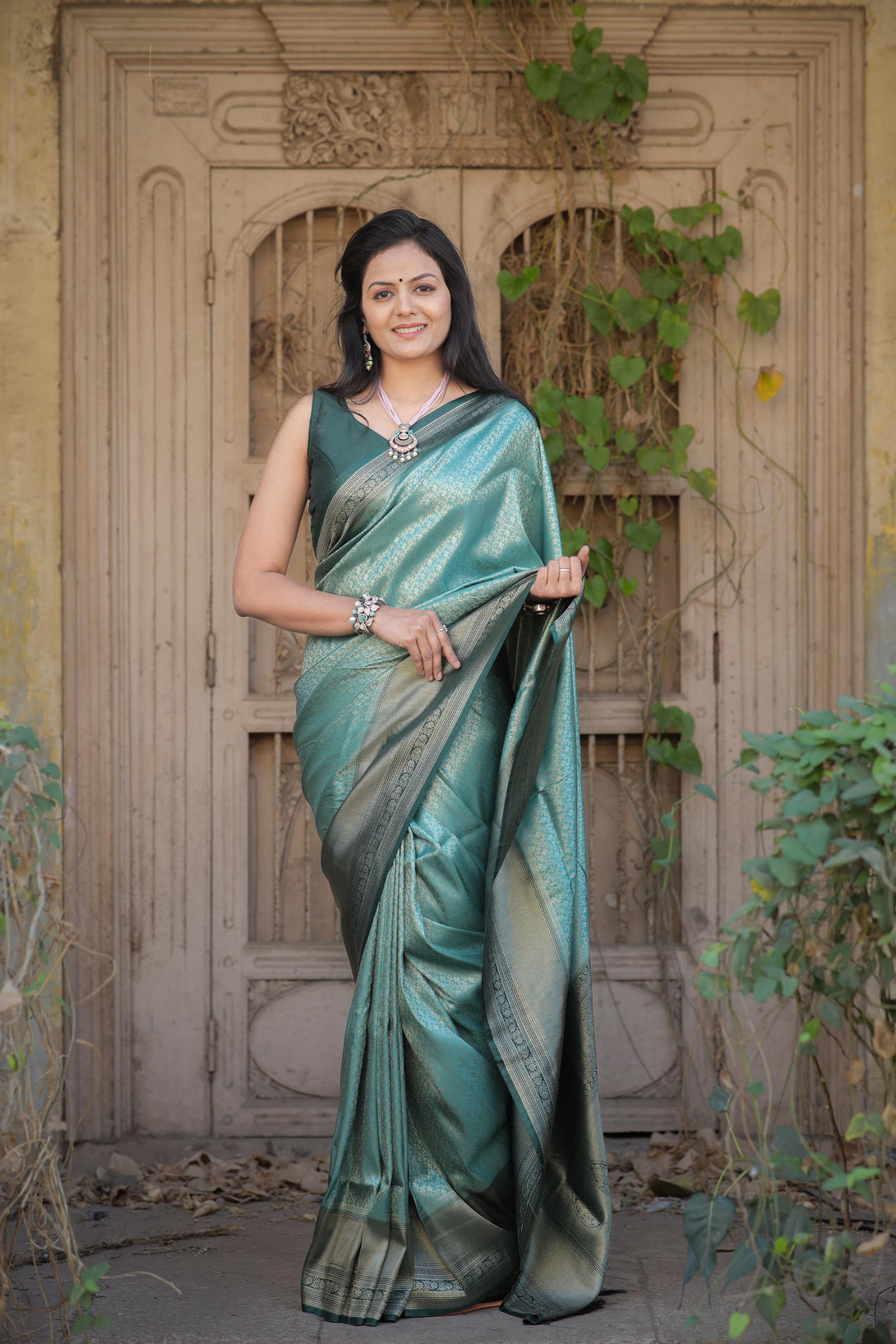 Design: Elegant rich pallu with jacquard work throughout the saree