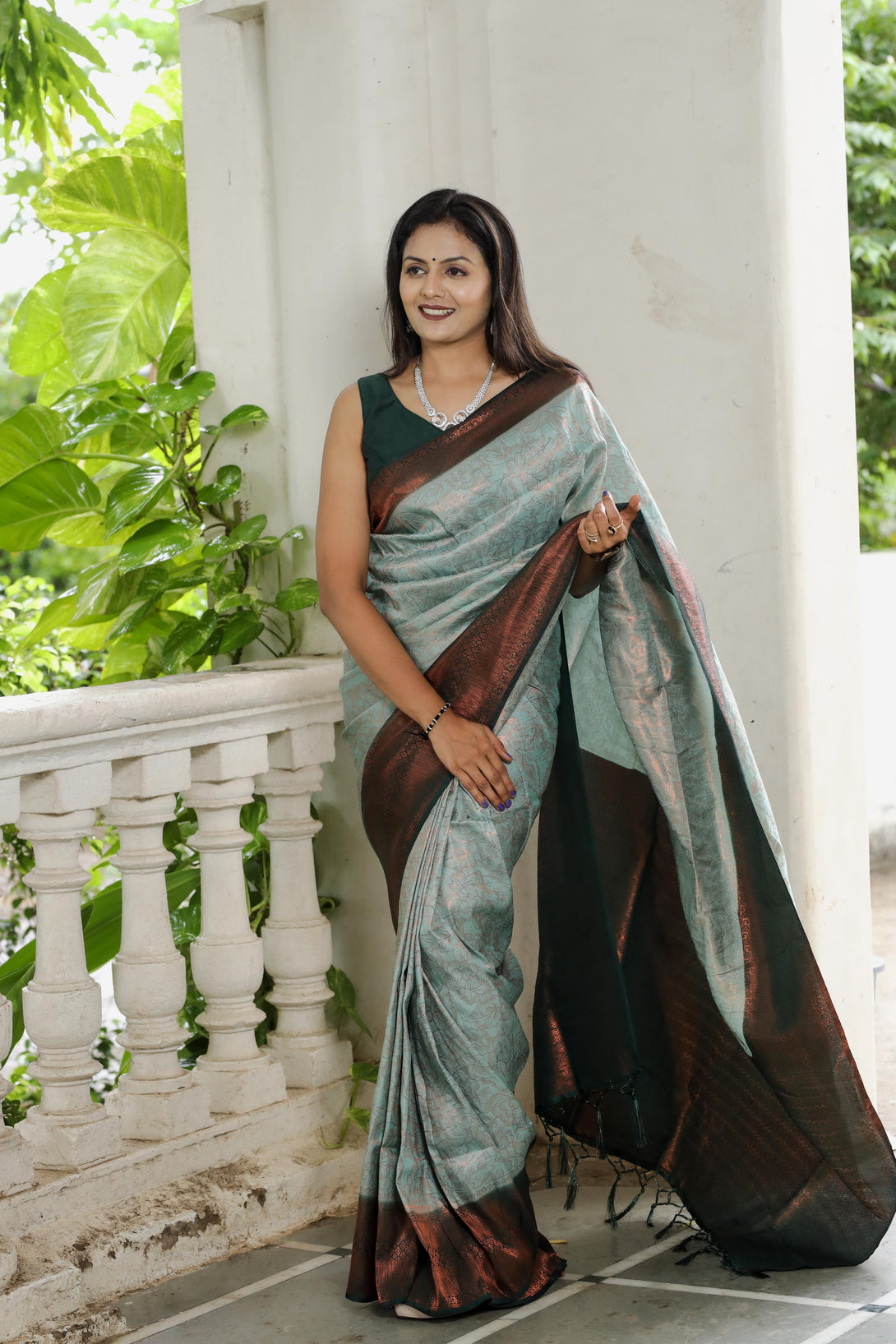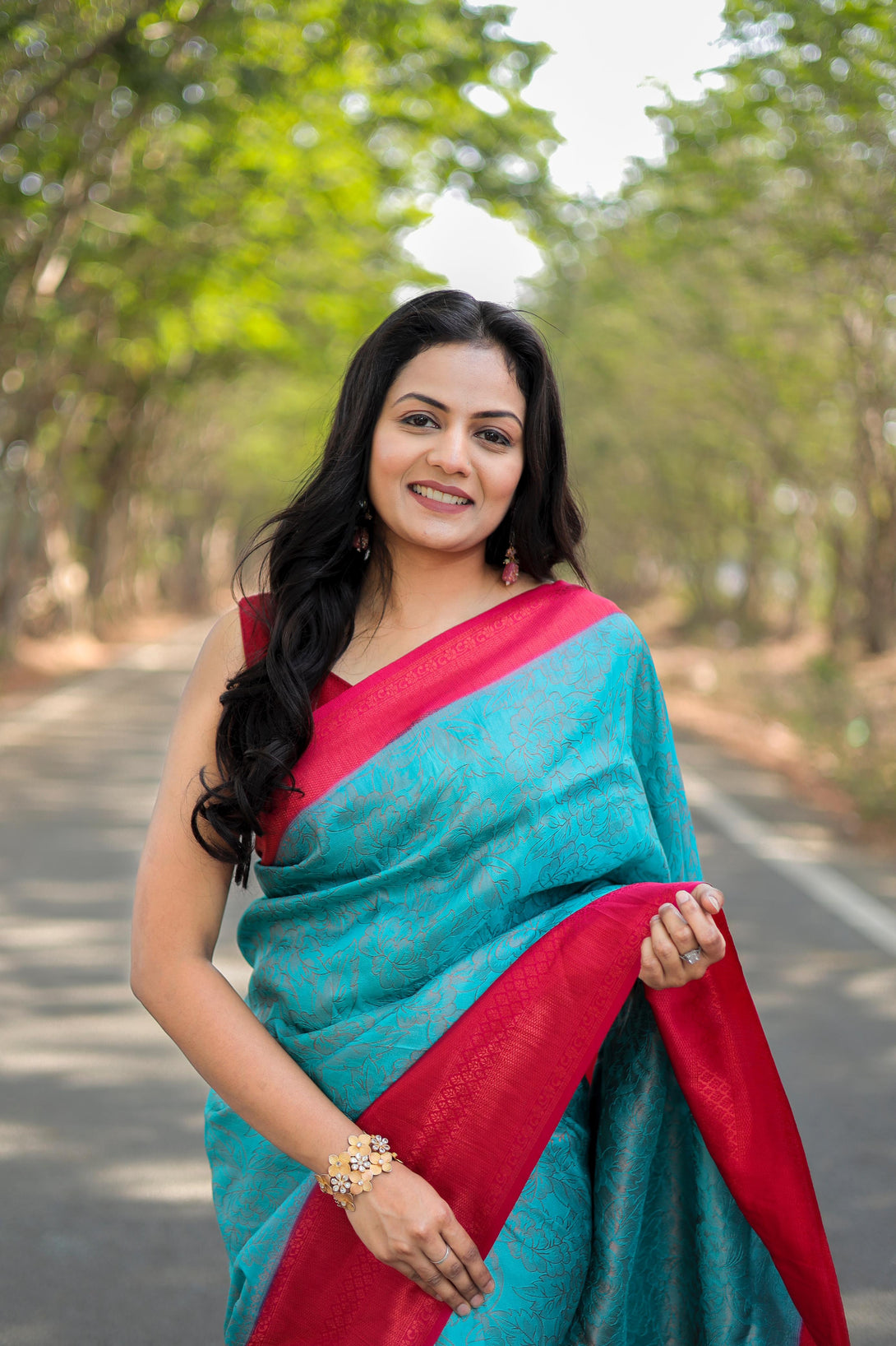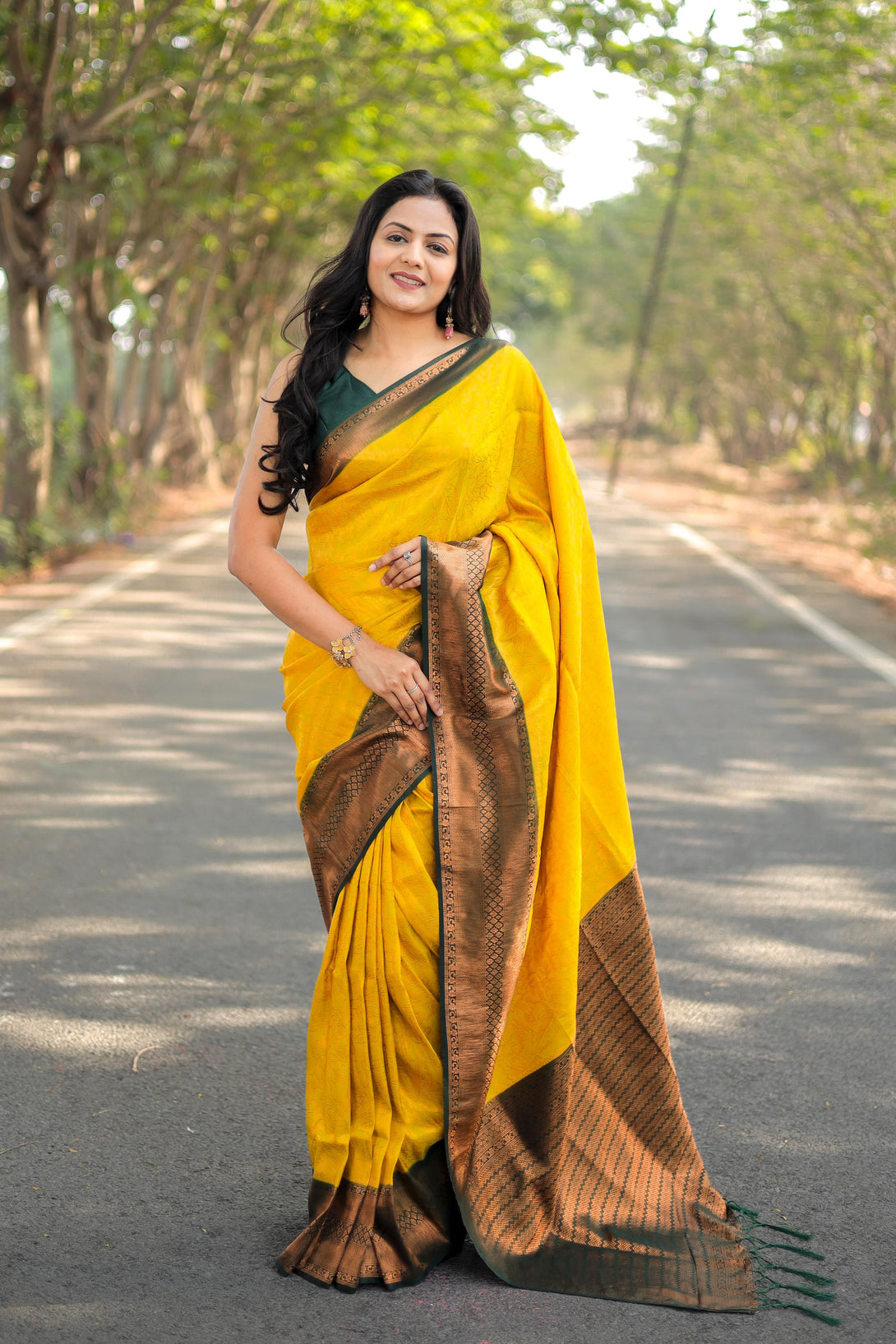 Design: Stunning rich pallu with jacquard work throughout the saree