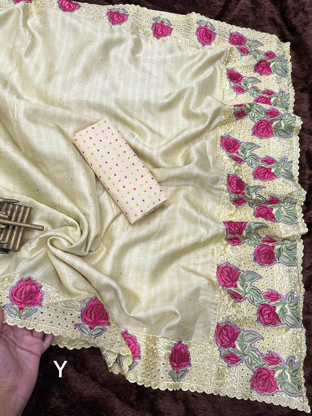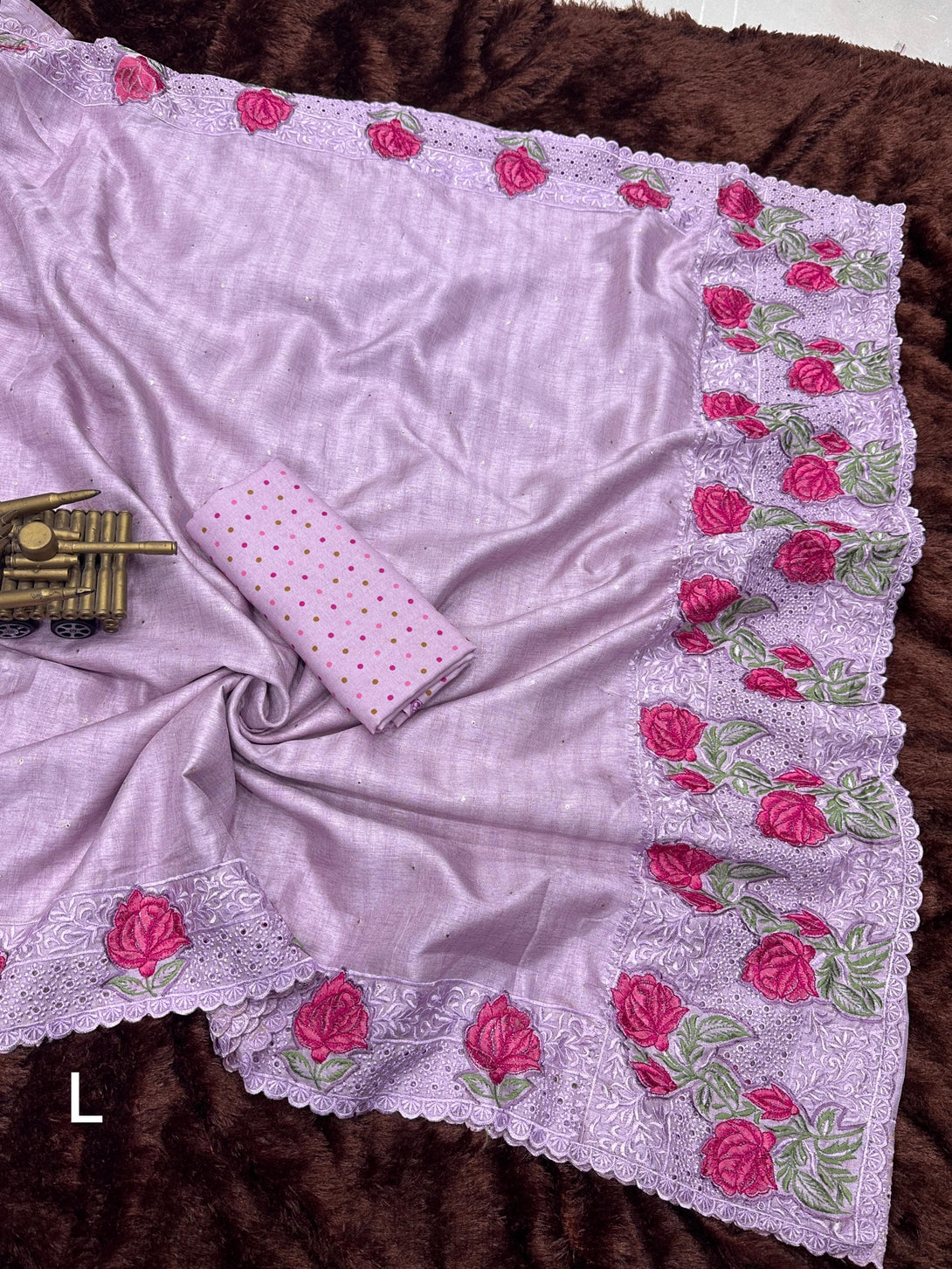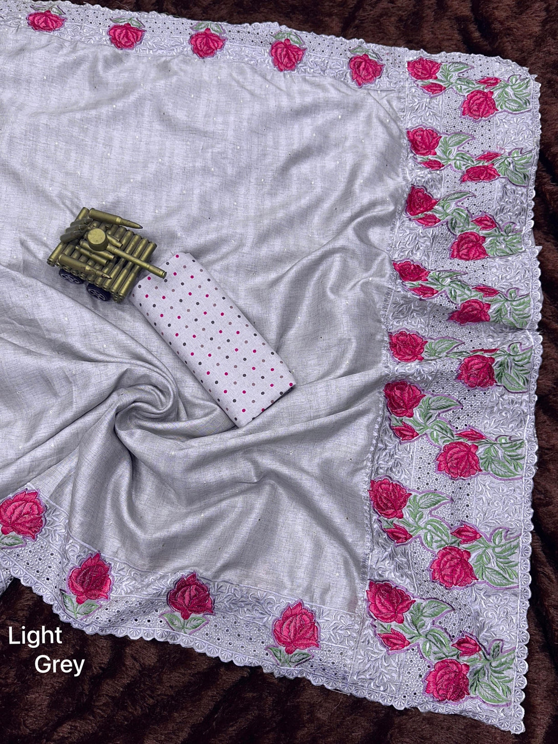 1- multi thread Embroidery work in saree with cutwork & boaring work