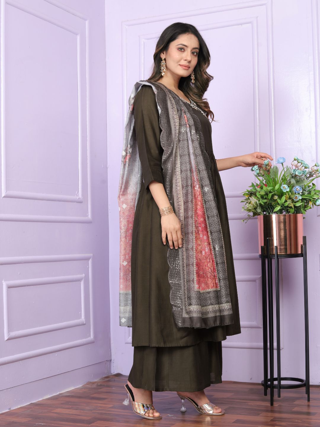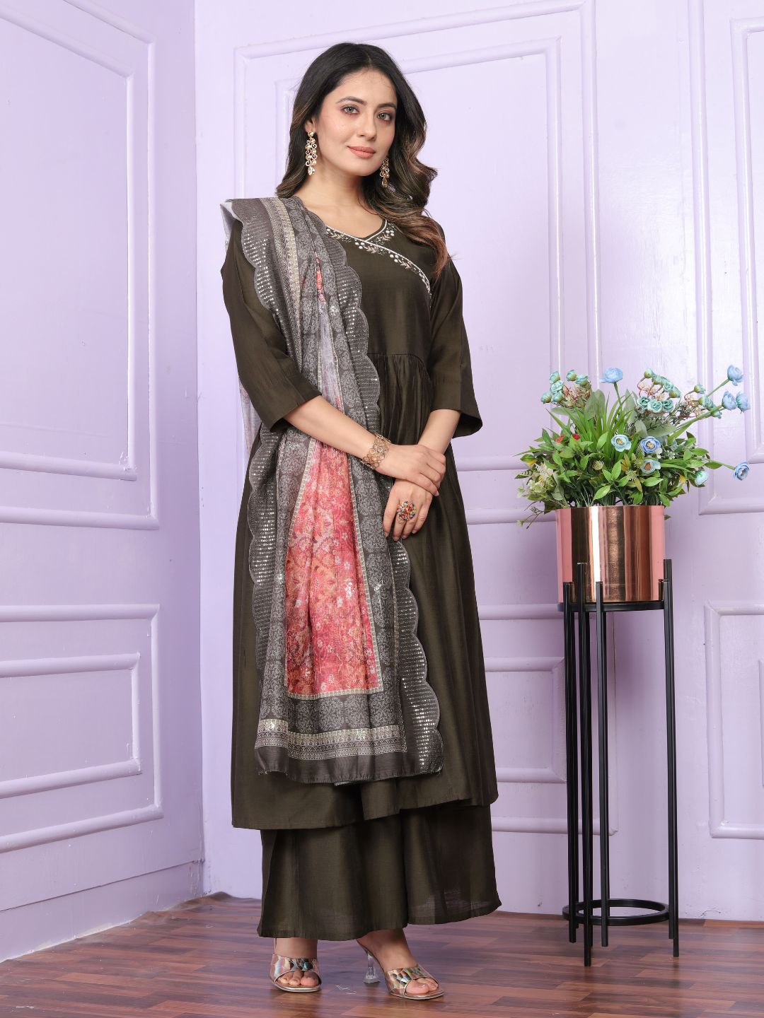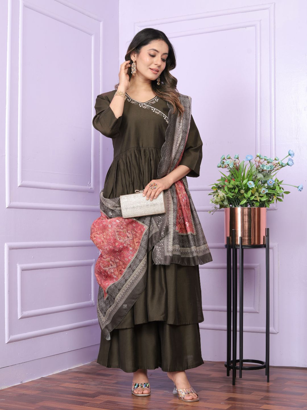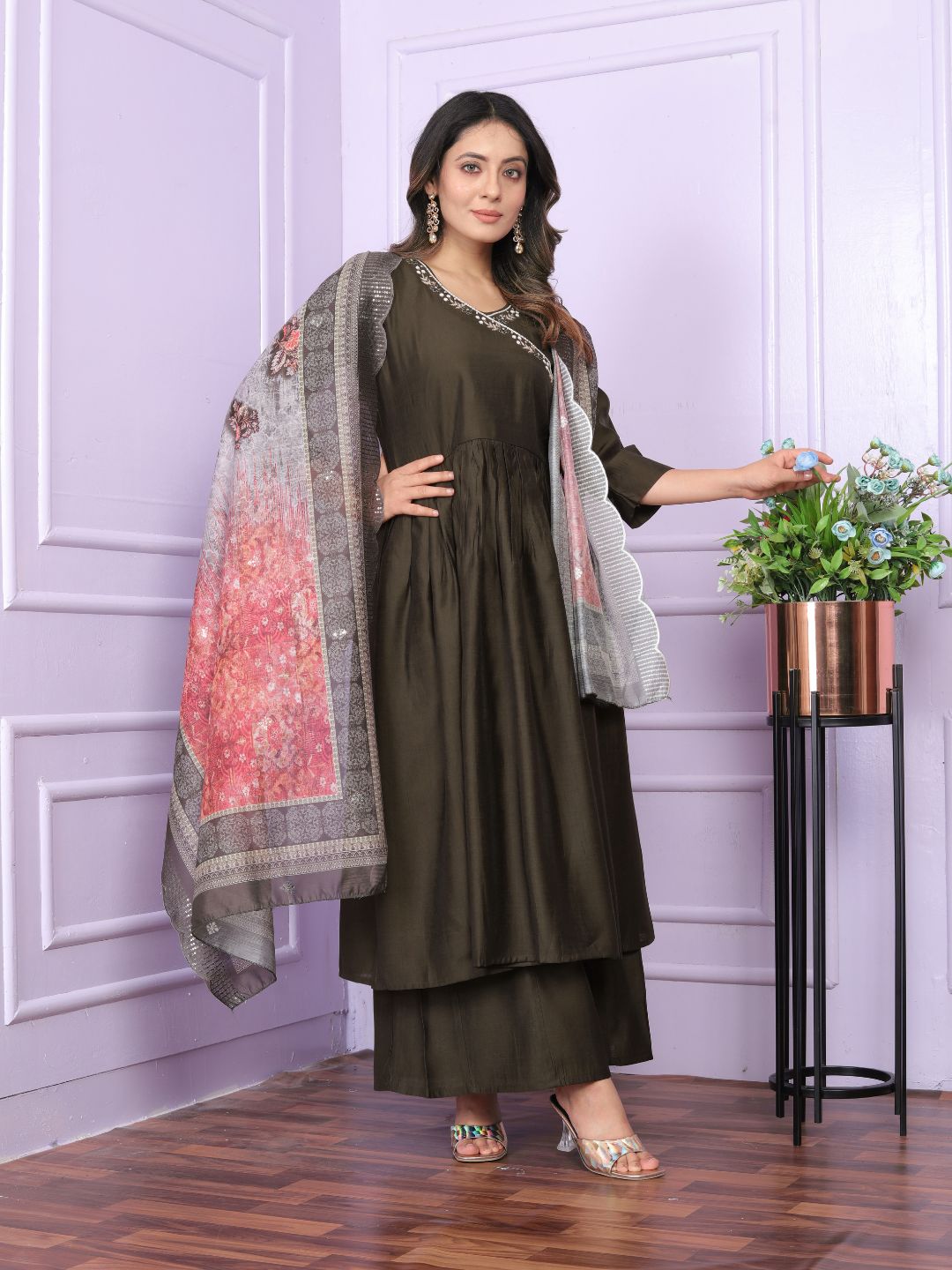 Style :- Angarkha Neck , Gher Kurti With Plazzo